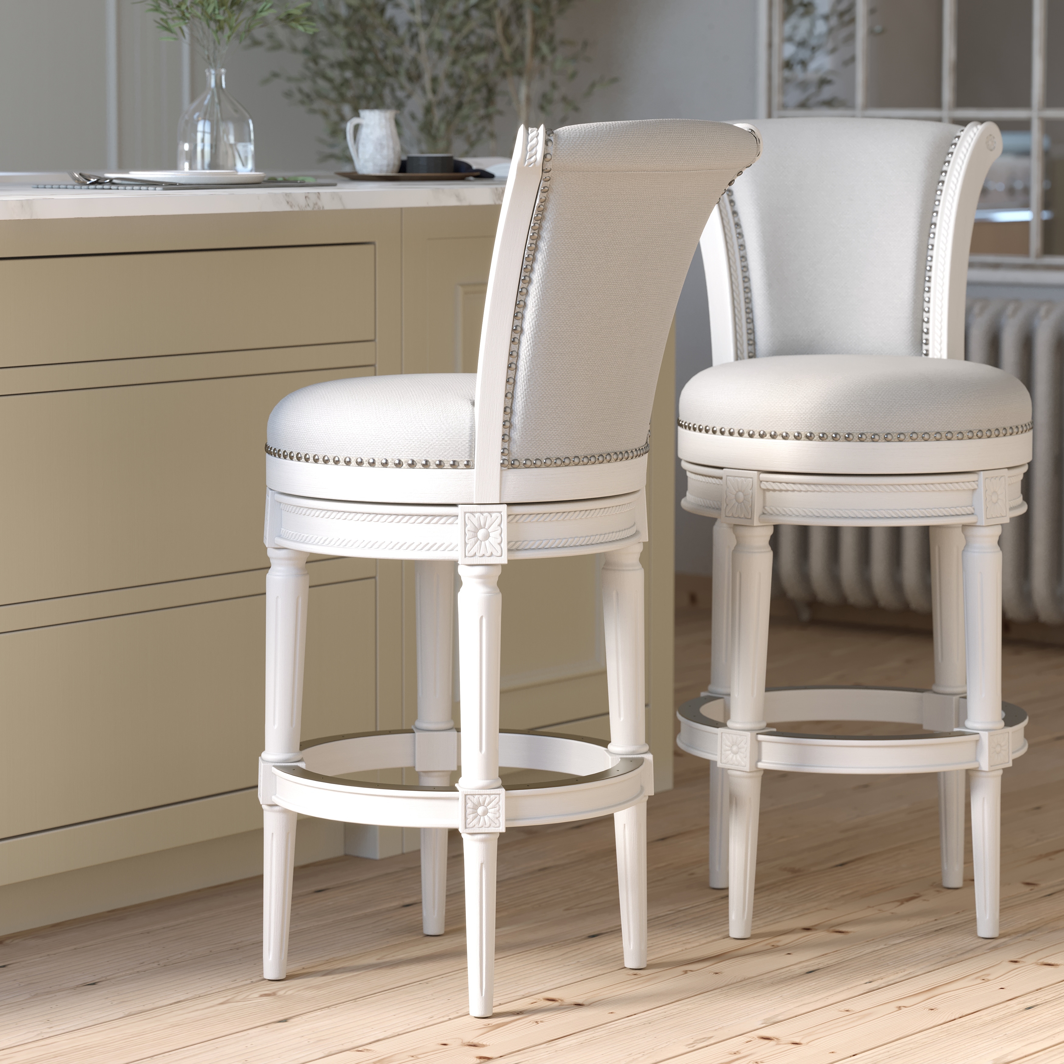Wood Bar-Height Swivel Bar Stool with High-Back Design