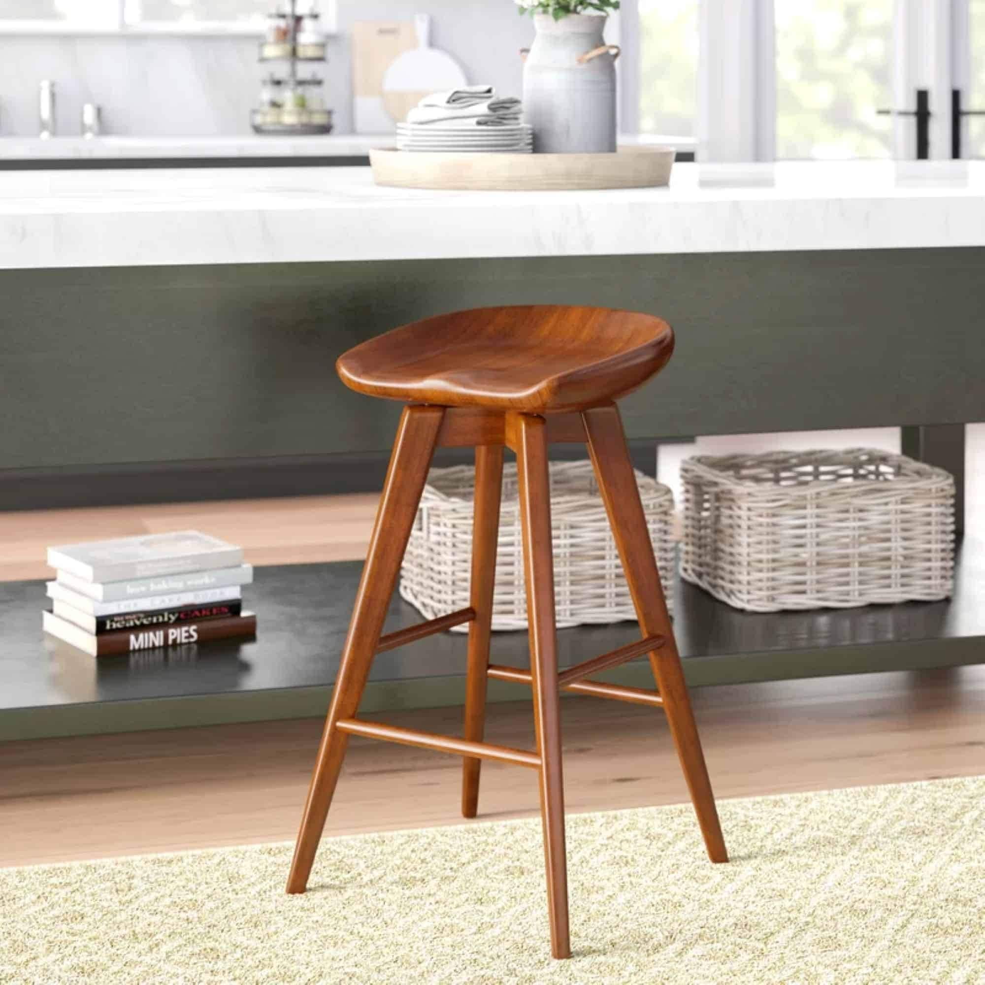 27''H Barstool Set of 3 Wooden Round Bar Stools with Footrest, Easy Assembly, for Dining Room, Kitchen