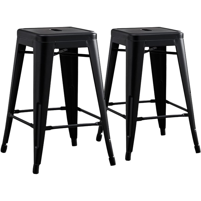2-Piece 30" Backless Industrial Bar Stool Set - Matte Black