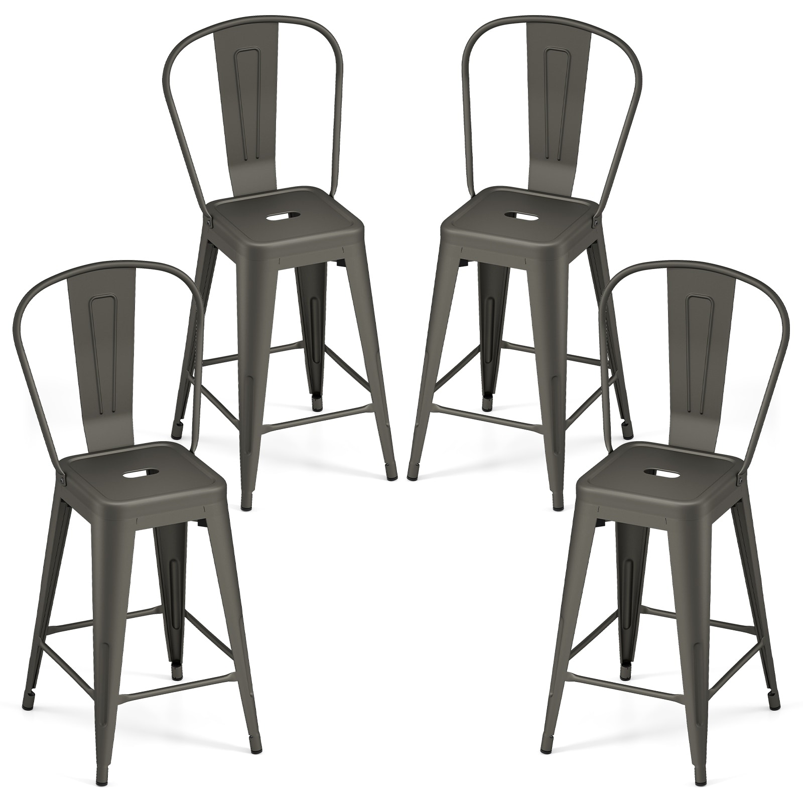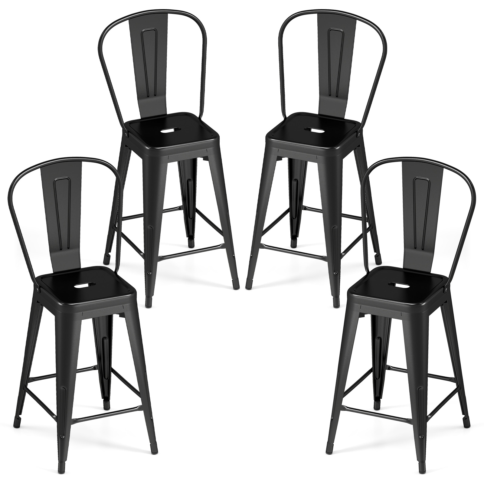 Gymax Metal Bar Stools Set of 4 24'' Counter Height Barstools w/