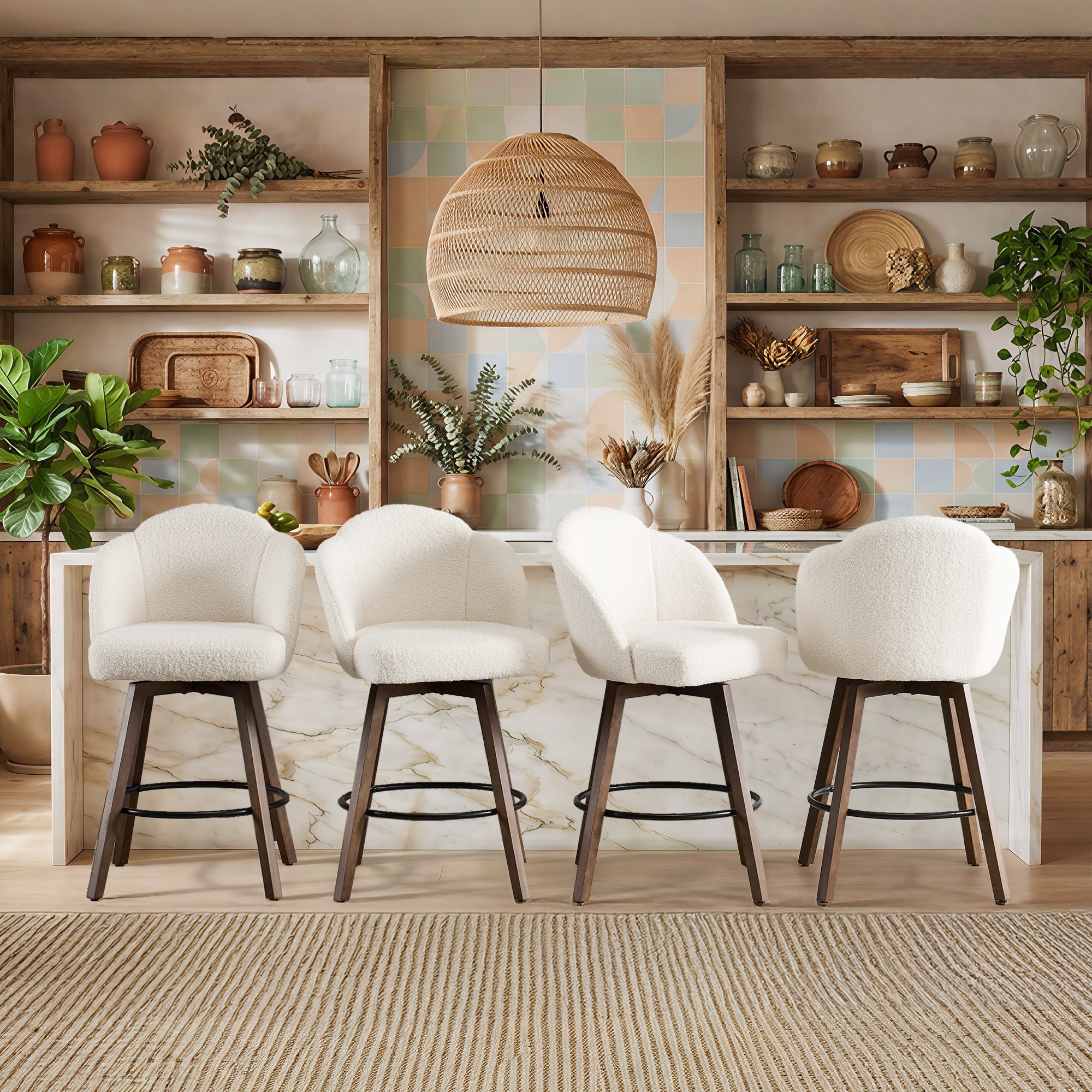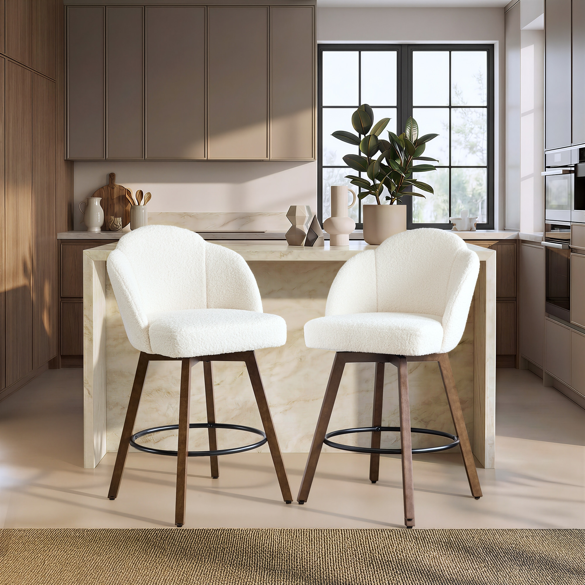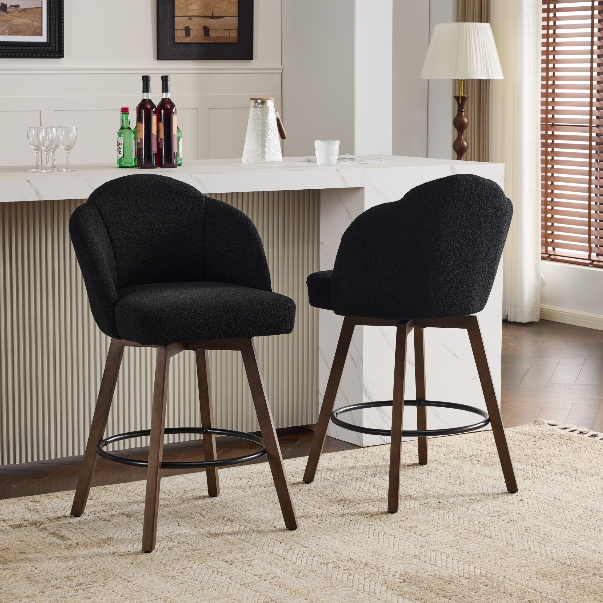 27" Swivel Counter & Bar Stools with Solid Wood Legs, Mid Century Modern Kitchen Island Chair Set