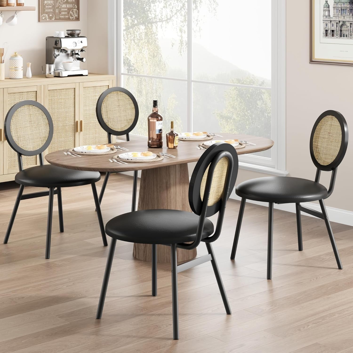Javlergo Bar Stool Set of 2/4/6 Brown PU Leather Counter Height Bar Stools Armless Black Frame with Square Footrest
