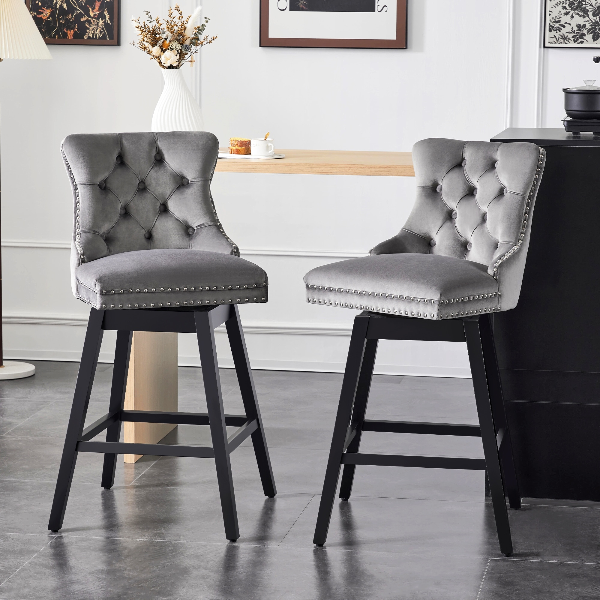 26"/30" Velvet Upholstered Swivel Counter or Bar Height Stools