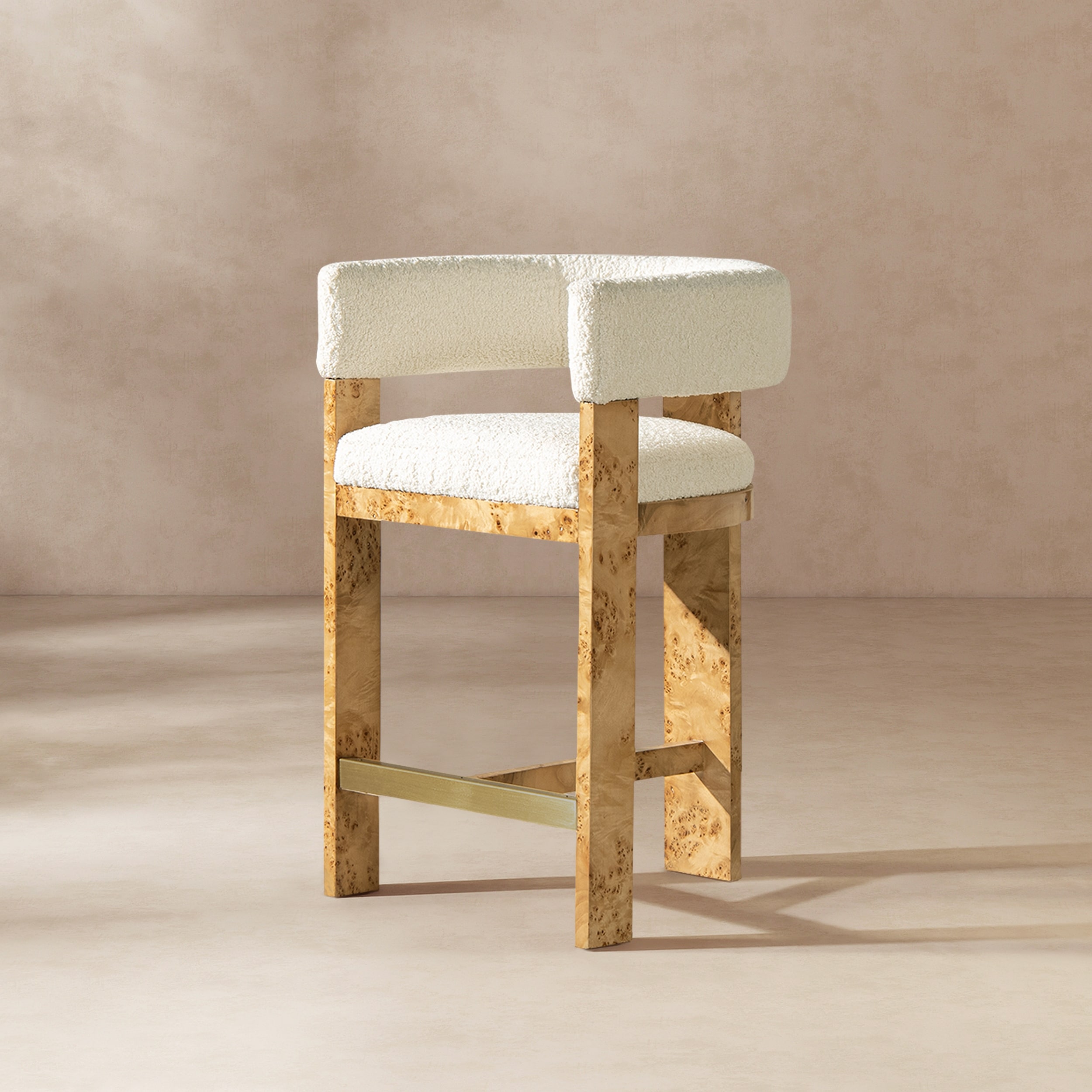 Vavona 26.5" Split-Barrel Back Burl Wood Upholstered Counter Stool