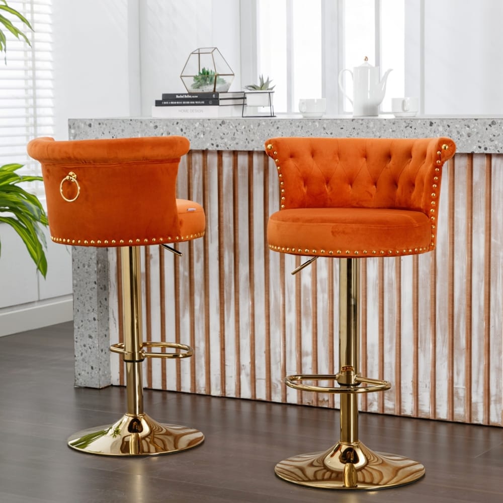 A Set of 4 Rotating Bar Stools, Equipped with Breathable Linen Cushions - Suitable for The Height of The Kitchen Island