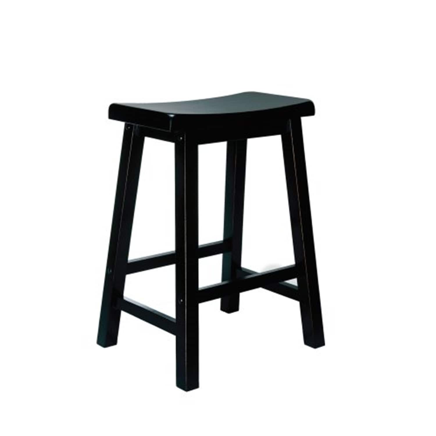 Wood Counter Stool with 24 Inch Seat Height, Antique Black Finish and Seaside Style for Home Kitchen or Bar Seating