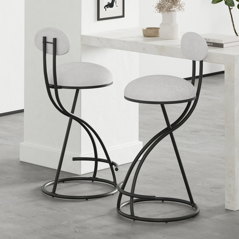 Set of 2 Round Bar Stools with Floral Print Seats - Sturdy Metal Frame for Kitchen & Dining