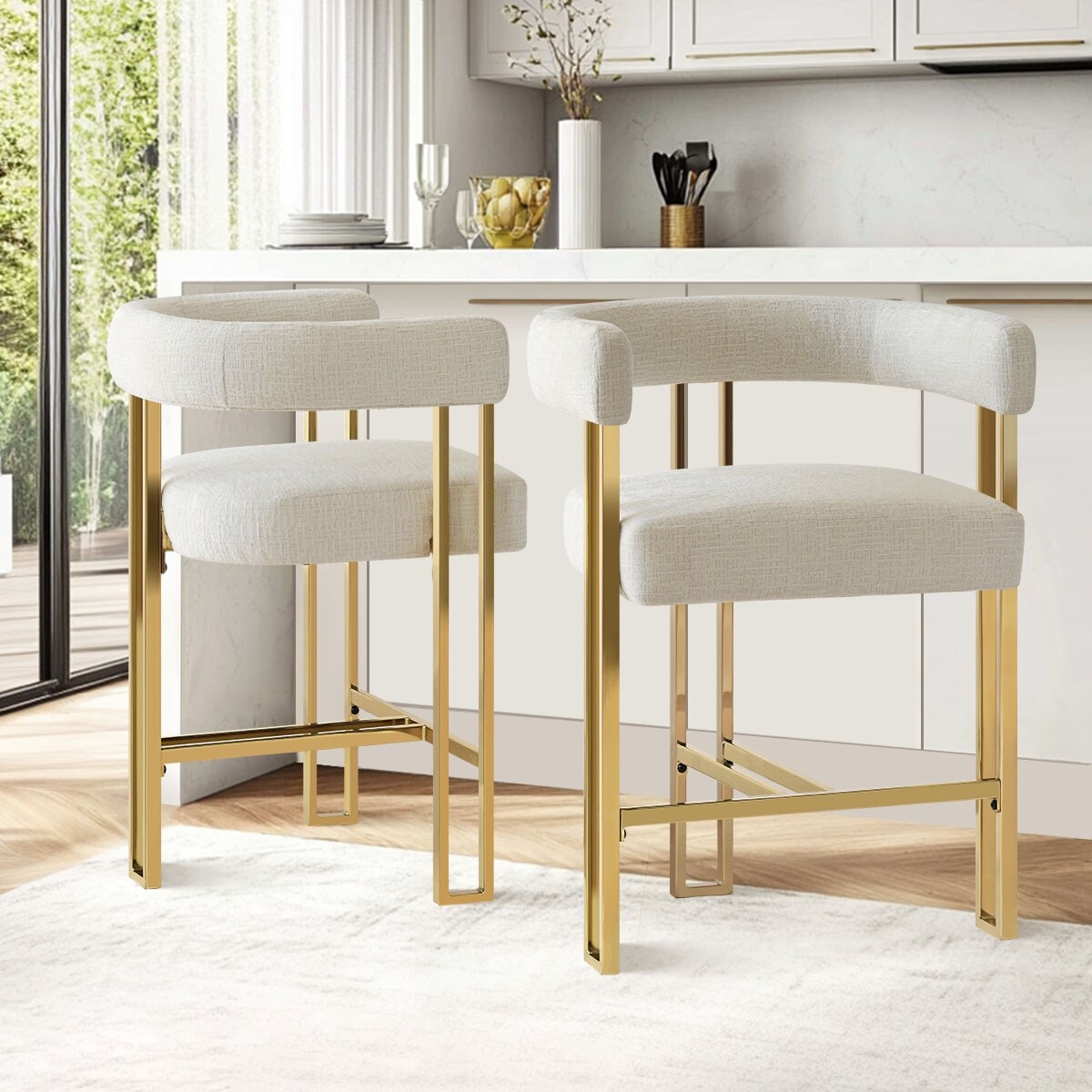 Chenille Upholstered Counter Stools with Gold Metal Legs (Set of 2)