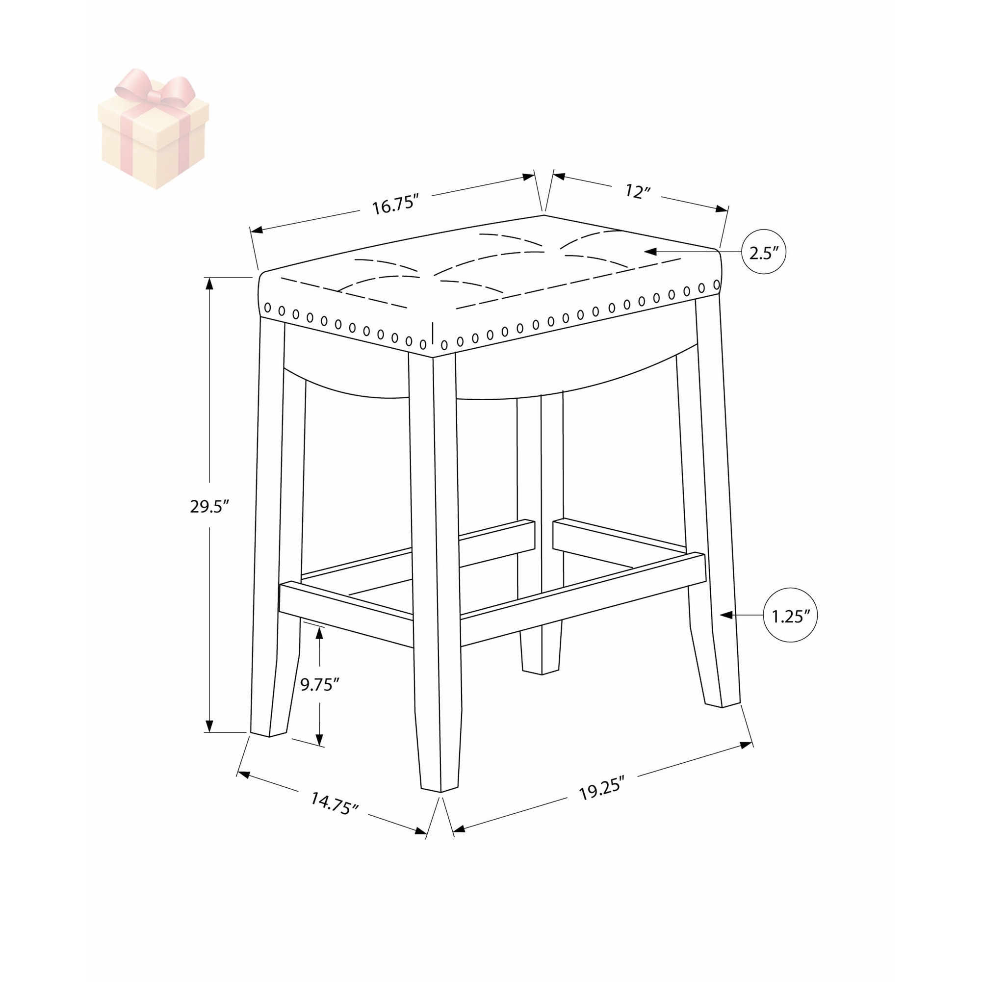 2 Piece Upholstered Bar Stool Set, Wooden Barstools with Footrest