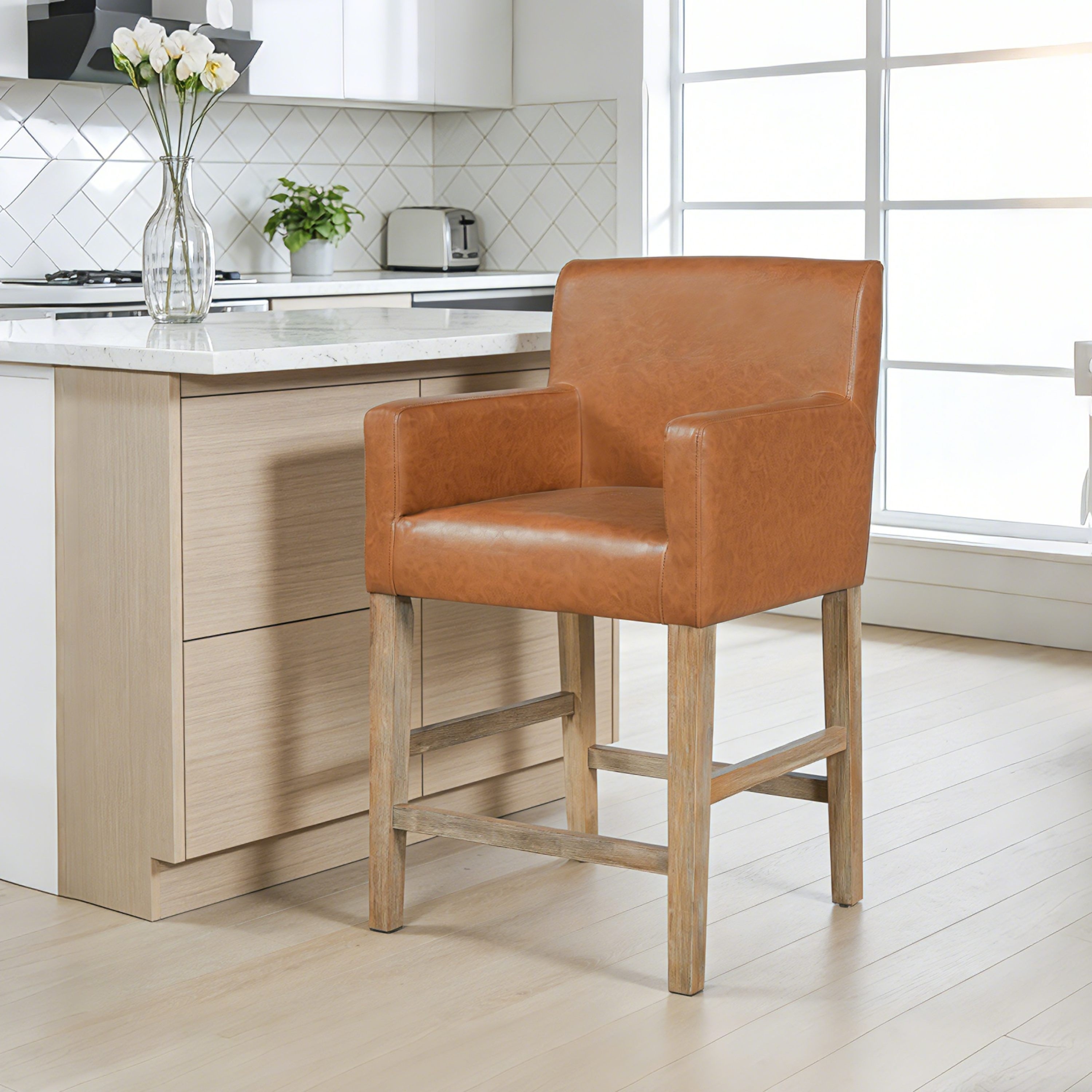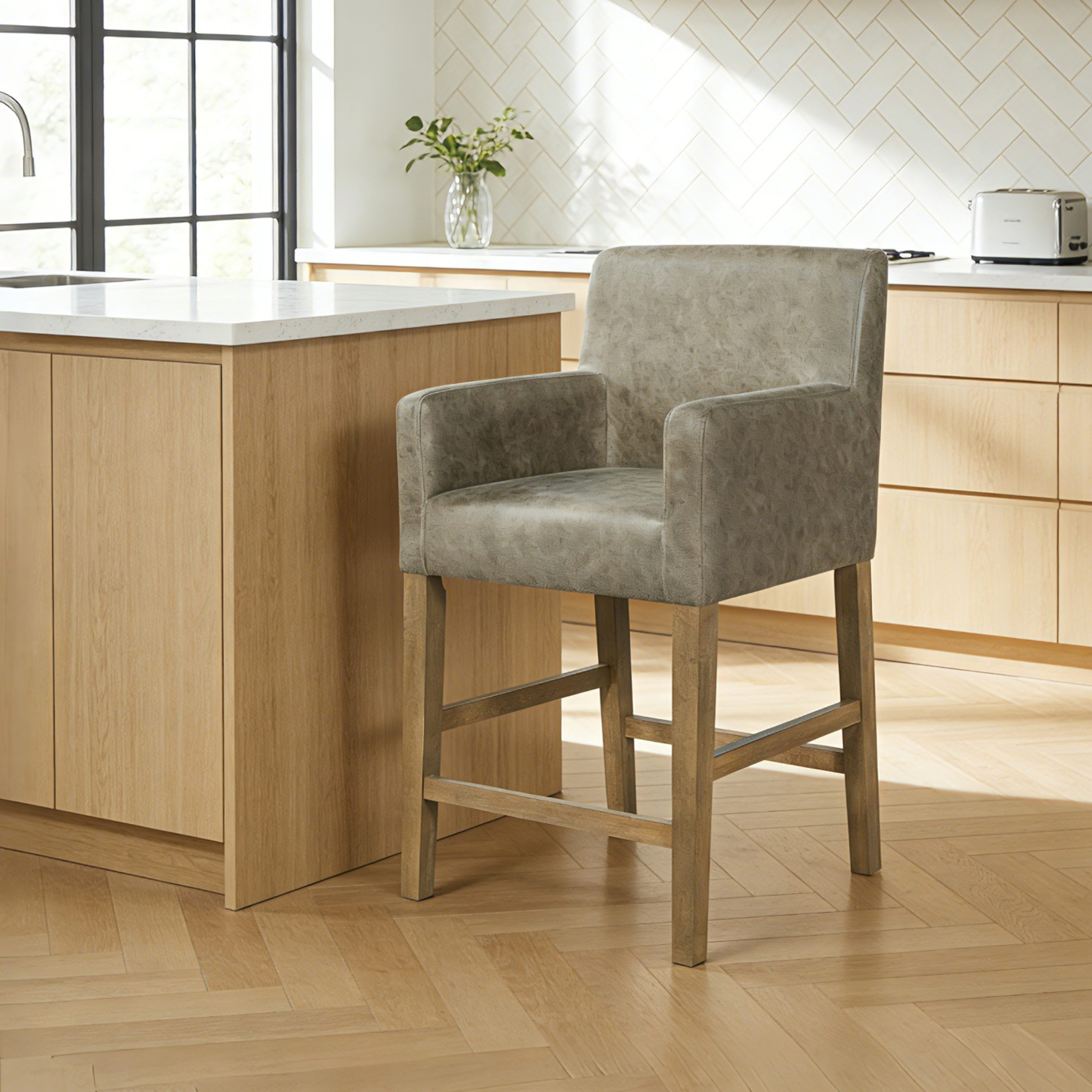 Spruce & Spring Arya Upholstered Boucle Counter Stool with Solid Wood Frame