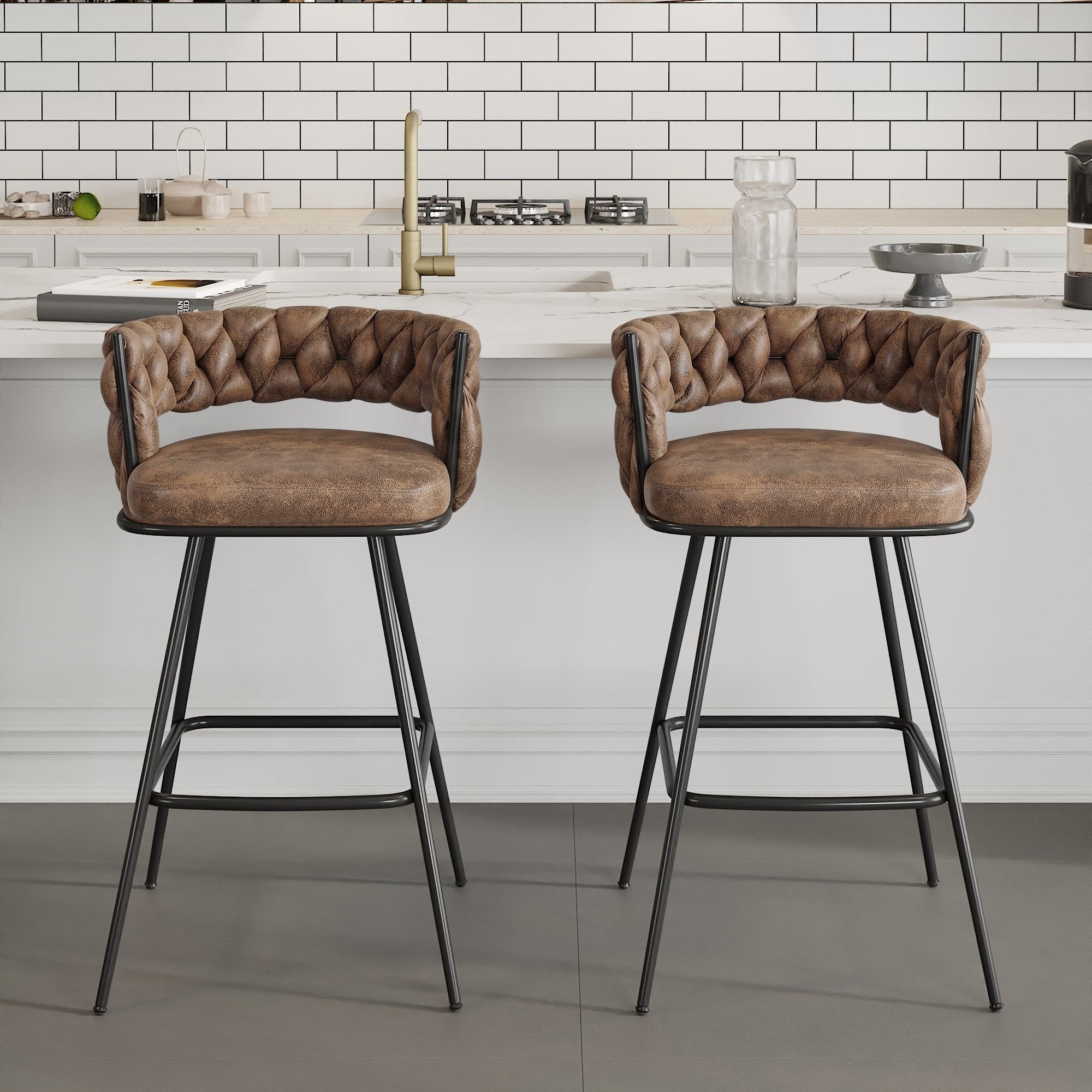 Javlergo Set of 2/4/6 Counter Height Bar Stools 26.77" Upholstered Woven Back Bar Chairs with Armrests and Footrest