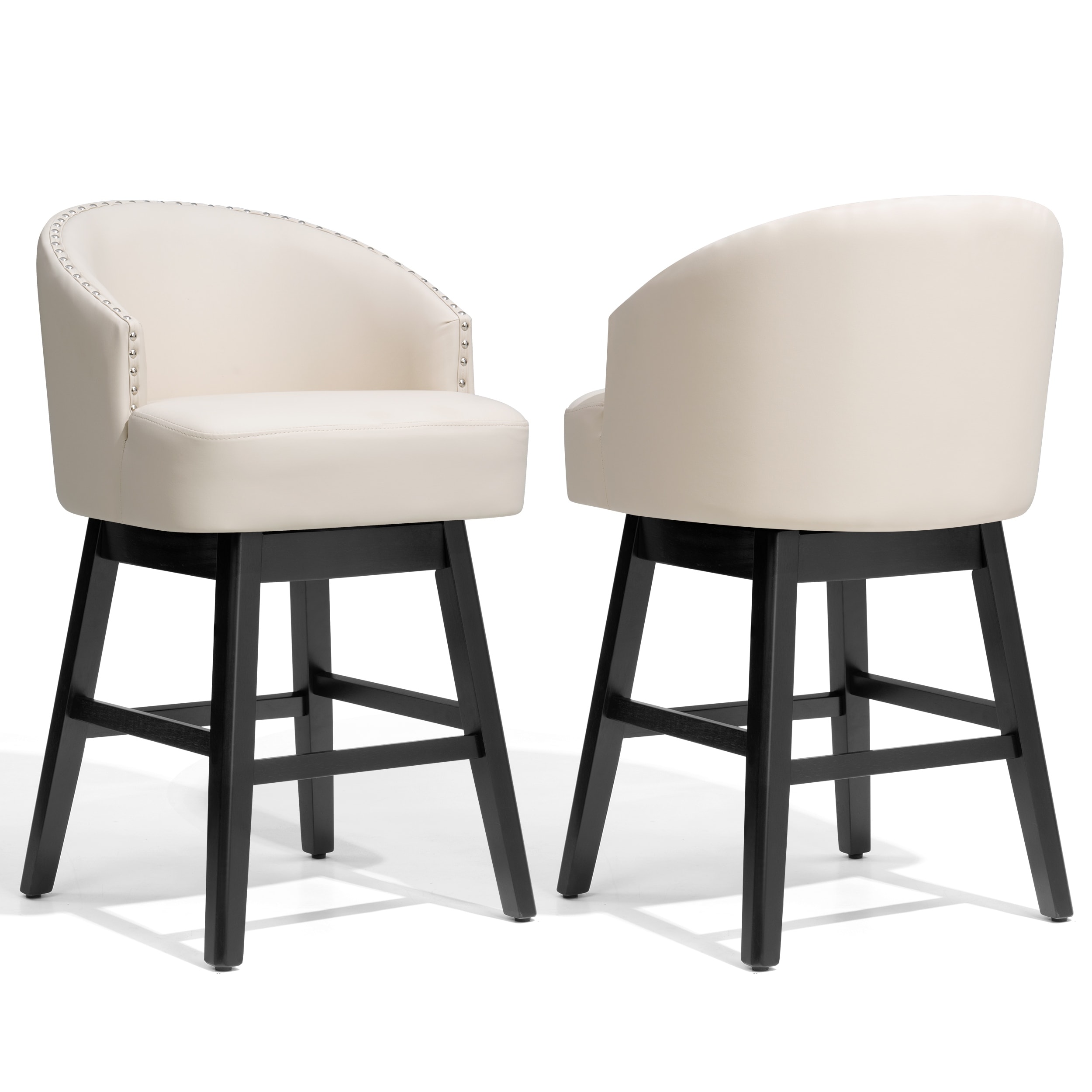 Swivel Pub Height Chairs Set of 2, Dark Brown Faux Leather Upholstered Wooden Dining Furniture