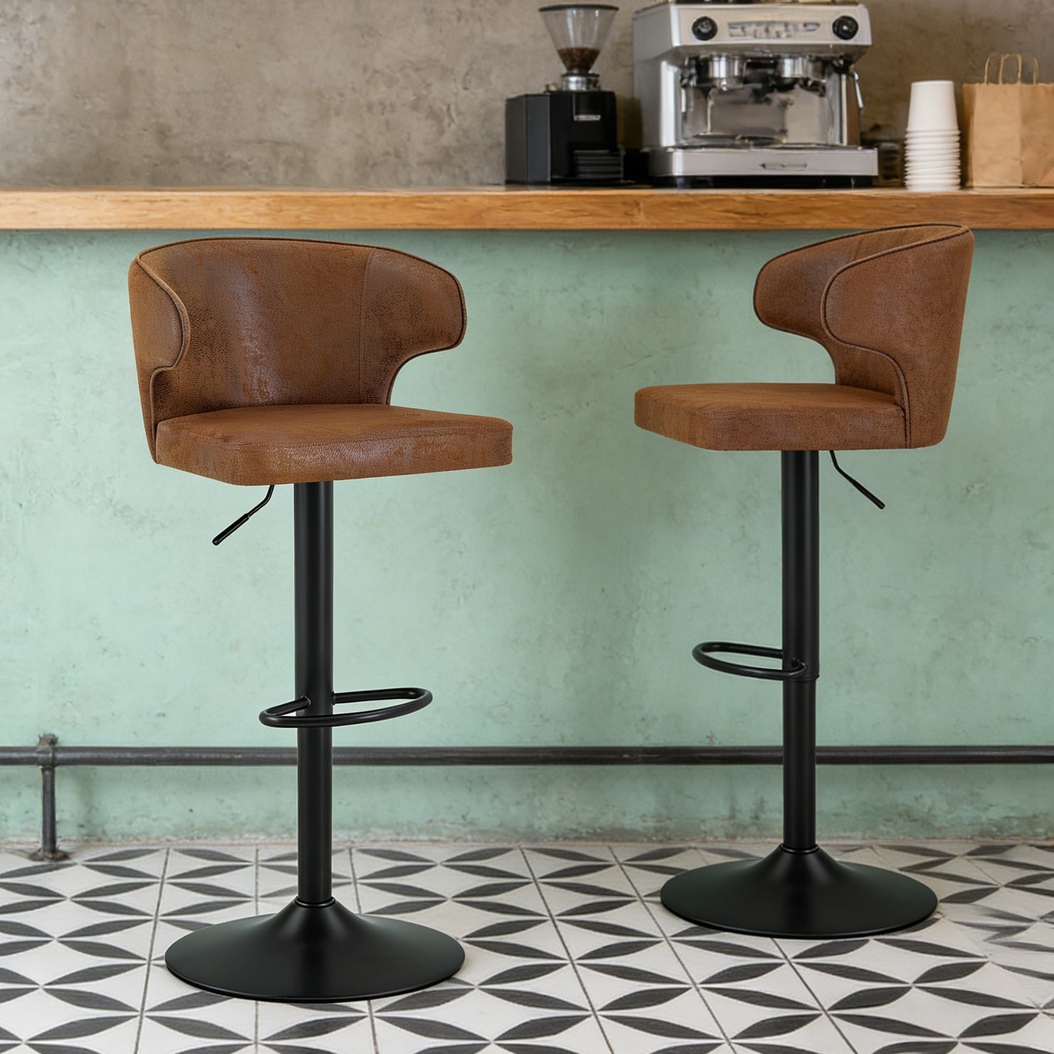 Modern Rotating Adjustable Bar Chair, PU Leather Belt Backrest Swivel Chair, Adjustable Height, (2 Pieces)