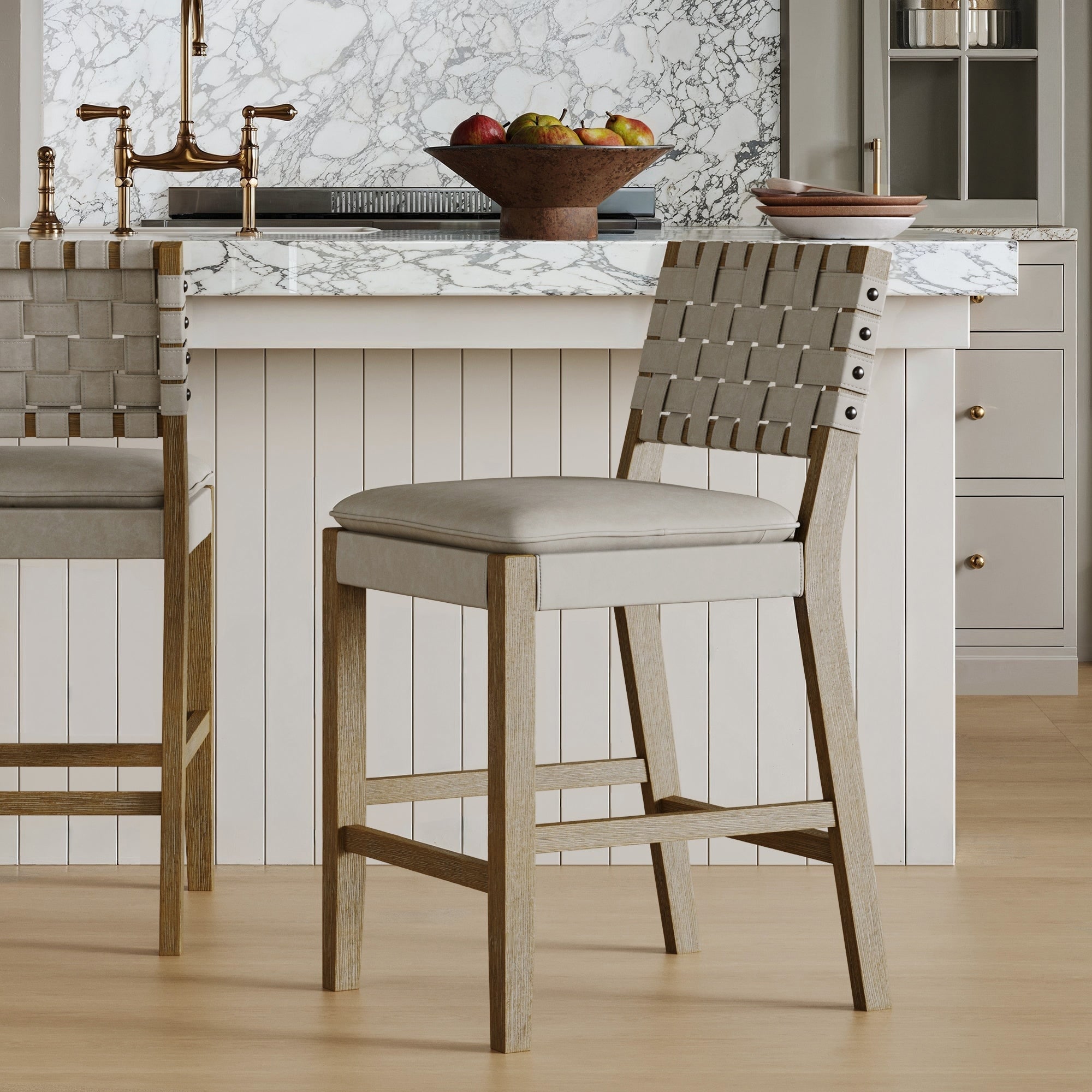 Nathan James Cohen Faux Leather Counter or Bar Height Stool, Solid Wood Frame with Footrest and Woven Leather Back