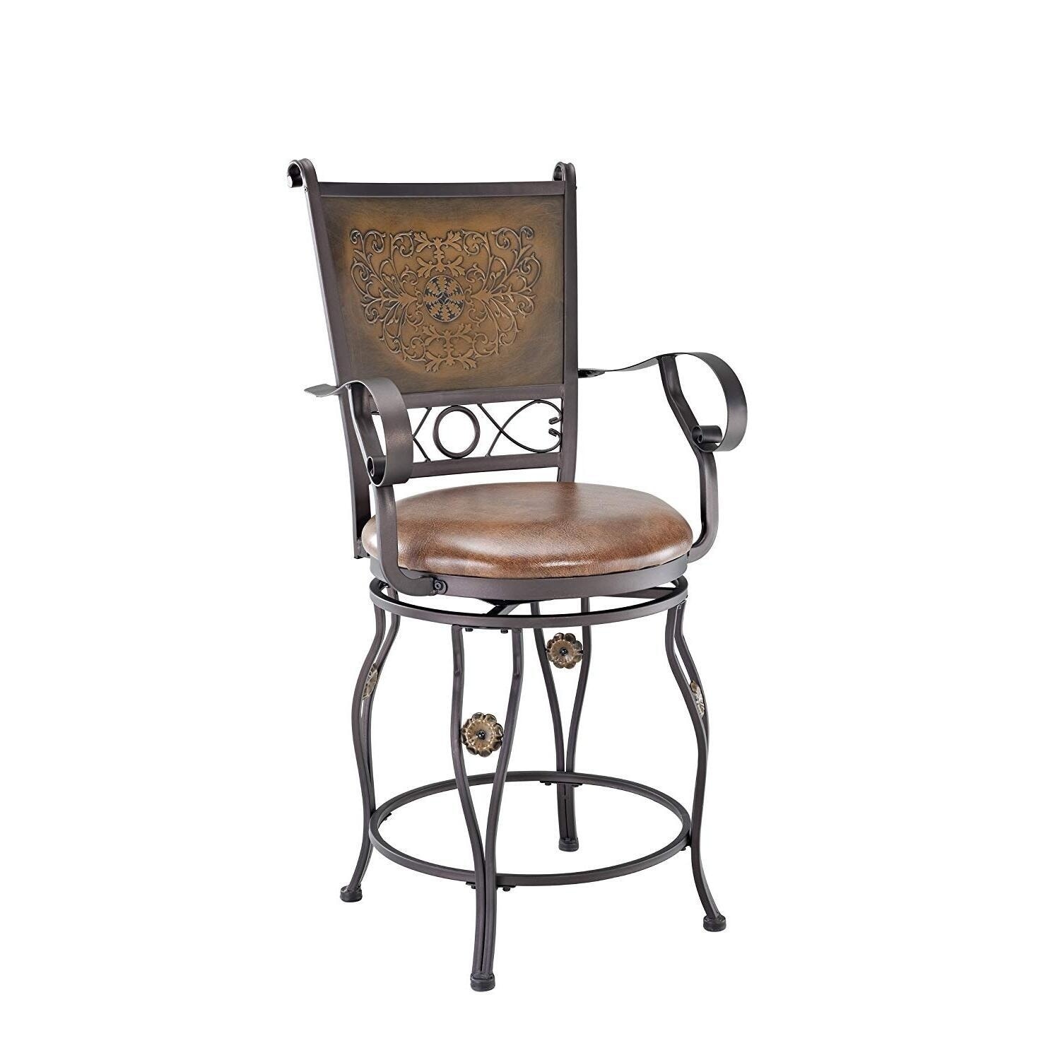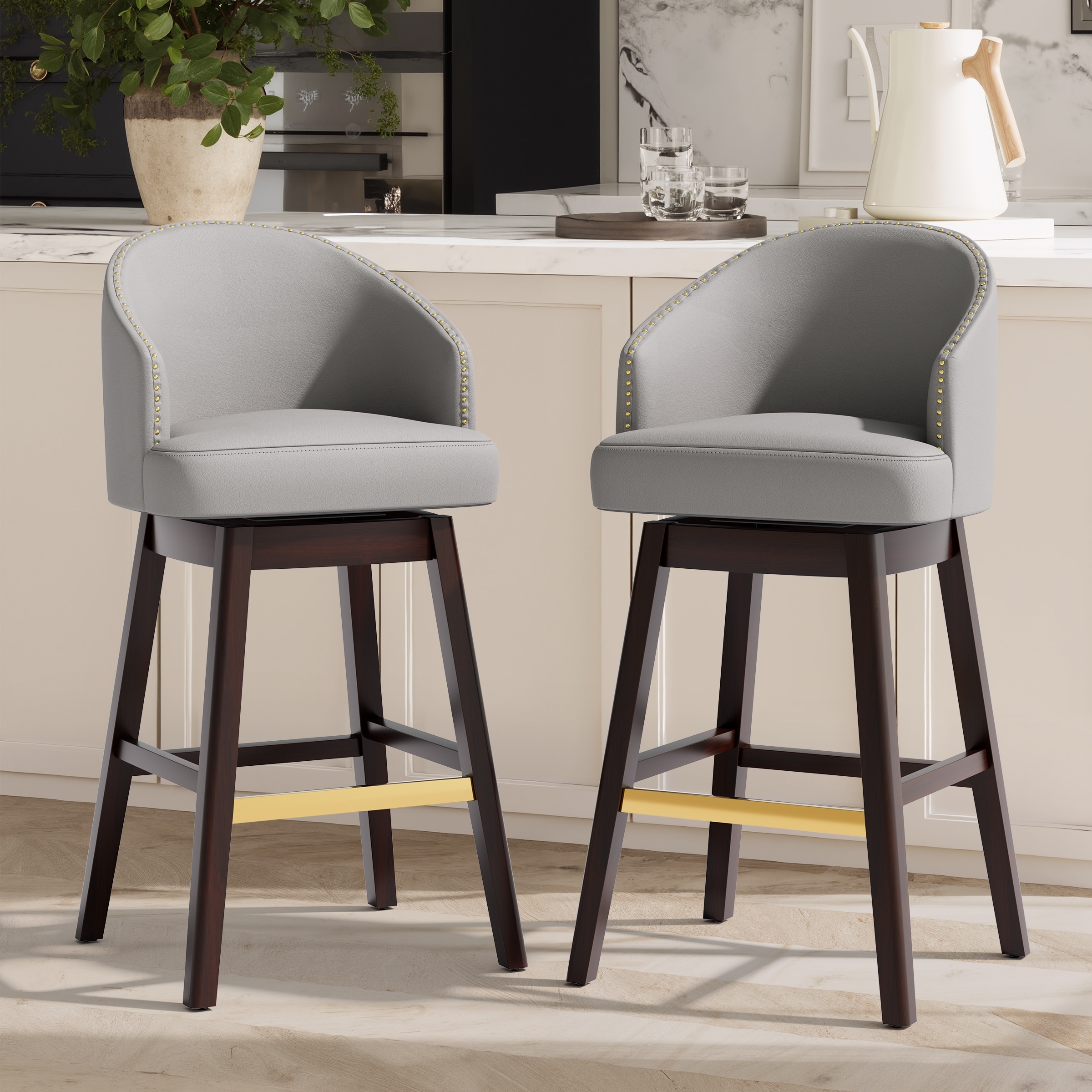 Madison Park Pearce Swivel Upholstered Counter Stool with Solid Wood Legs & Metal Footrest