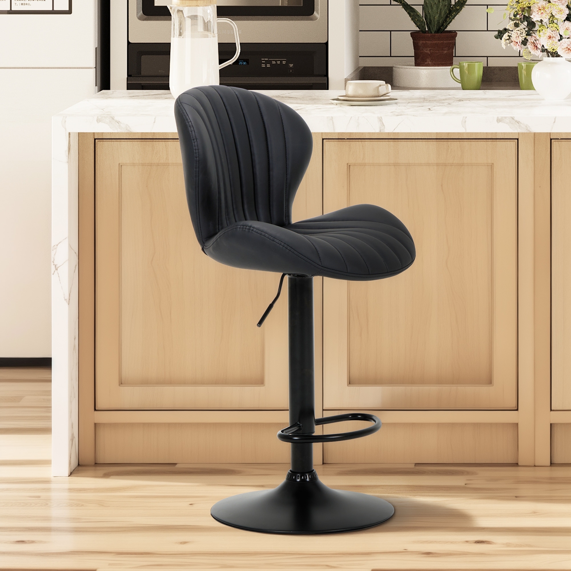 Adjustable Swivel Bar Stools PU Leather High Back Counter Height Stools