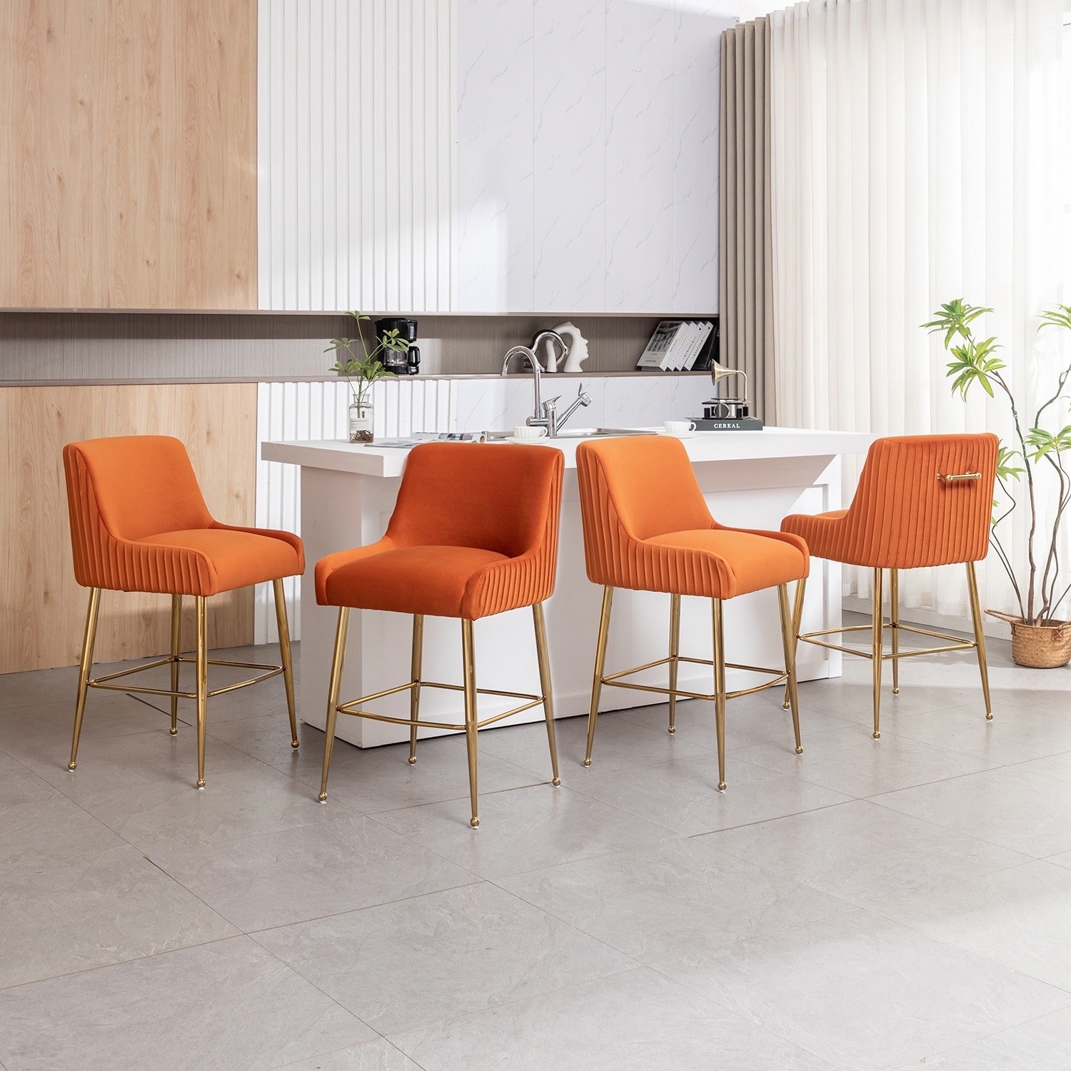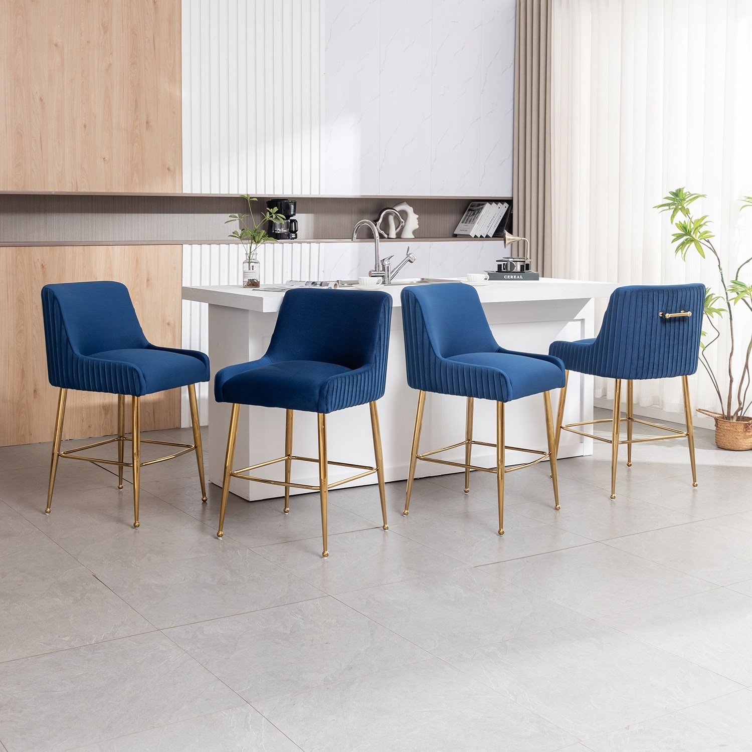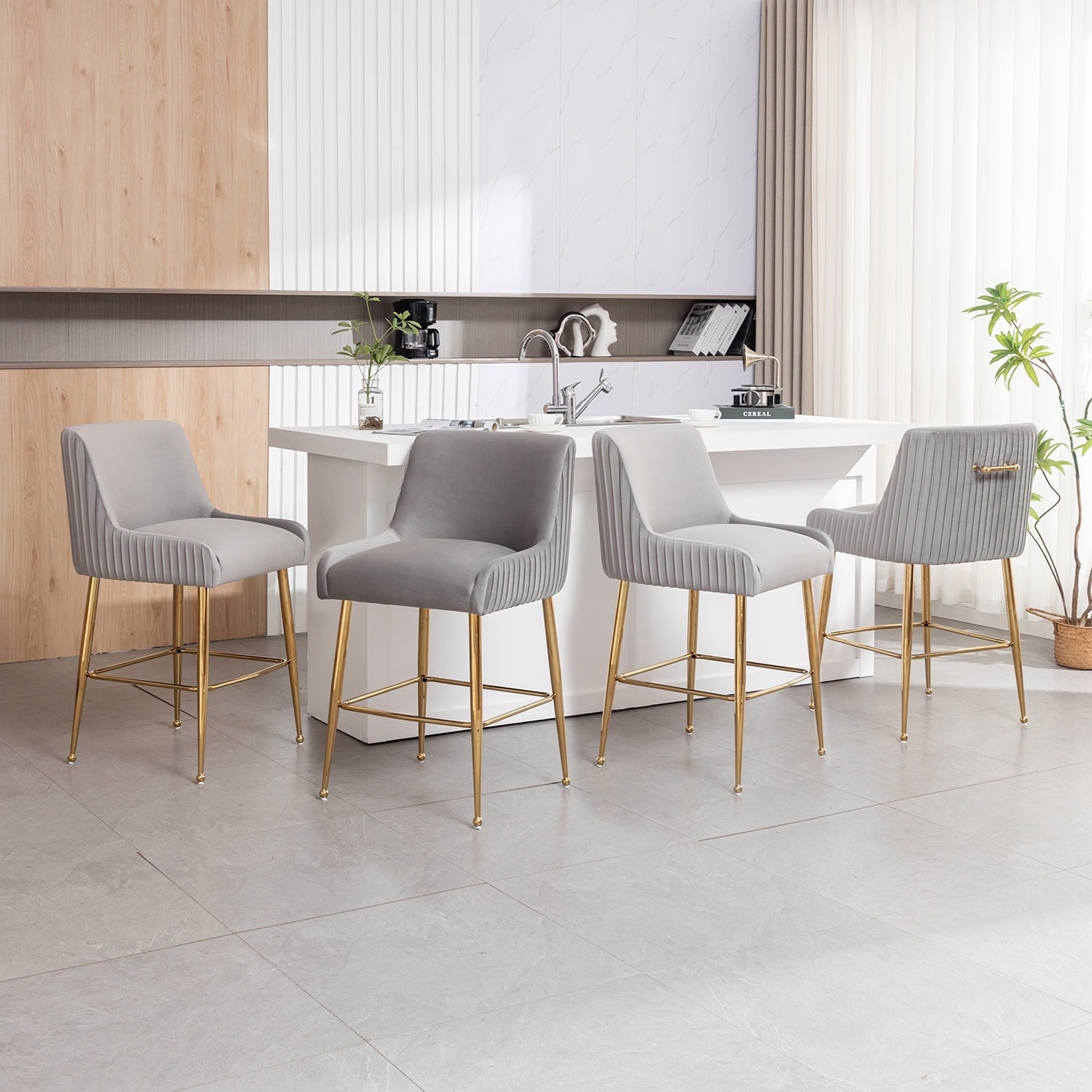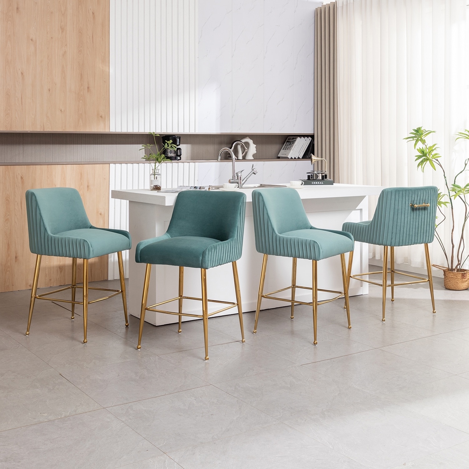 SEYNAR Modern Velvet 37'' H Metal Leg Counter or Bar Stools Set of 4
