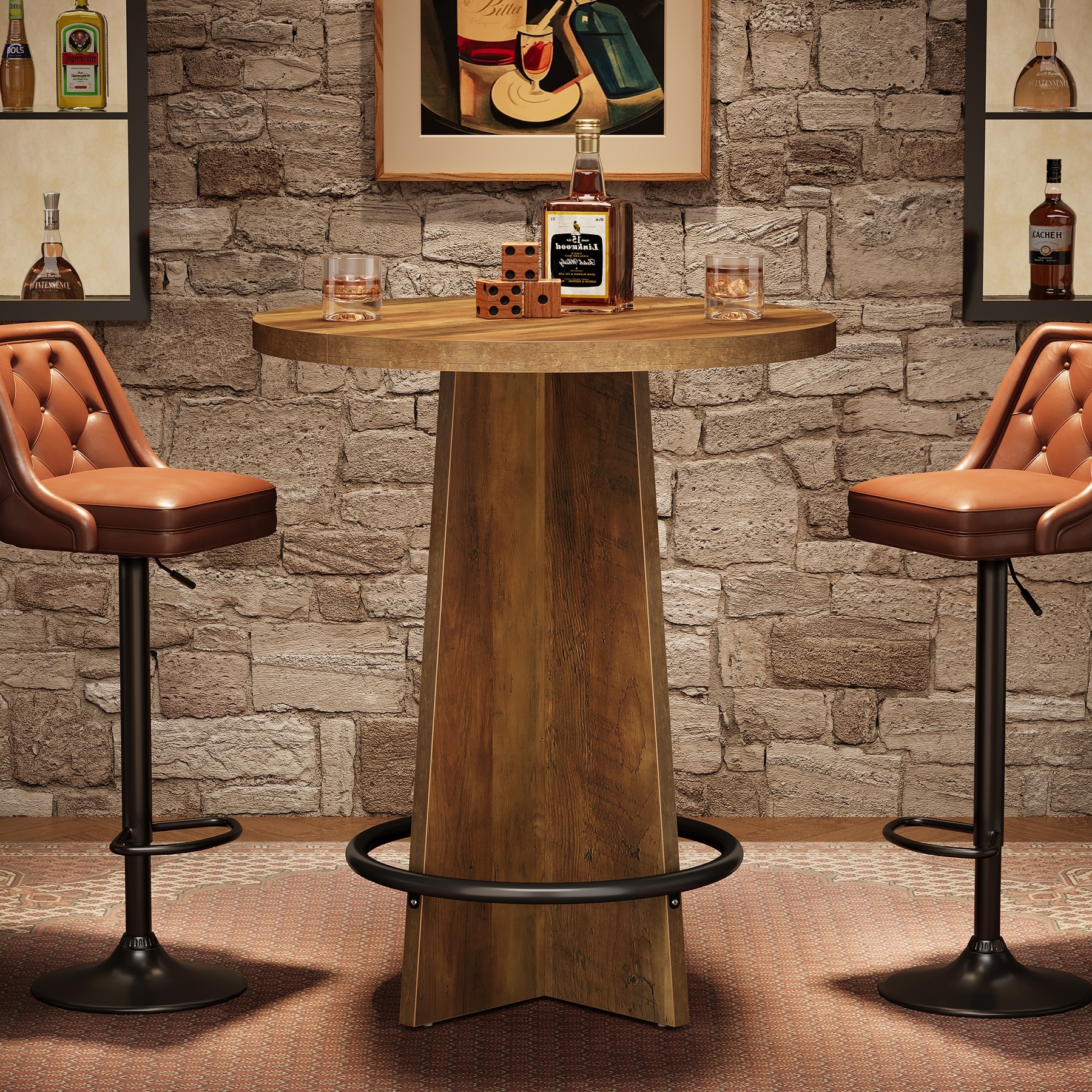 Round Bar Table with Pedestal Base, 37.4'' Tall Bistro Pub Table