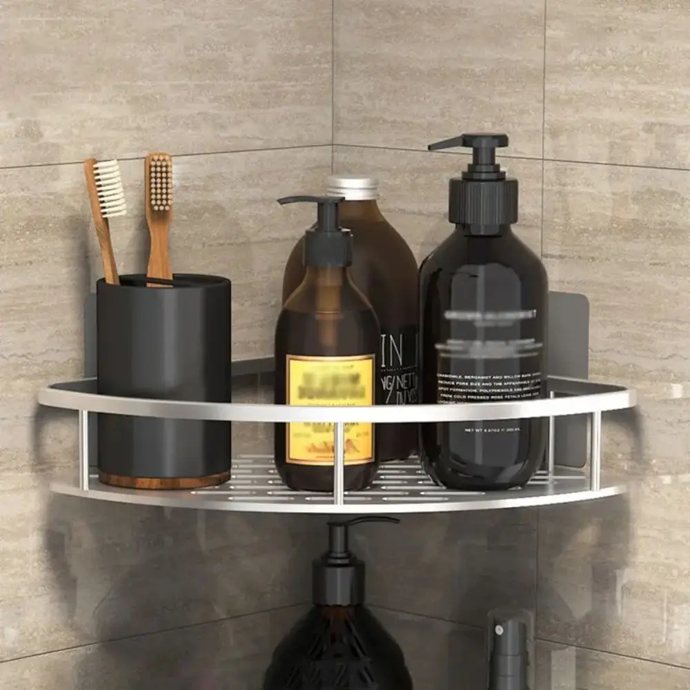 No Drill Wall Shelf, Bathroom Shelf Makeup Storage Organizer, Aluminum Alloy Shampoo Rack & Shower Accessories new Silver 2triangle