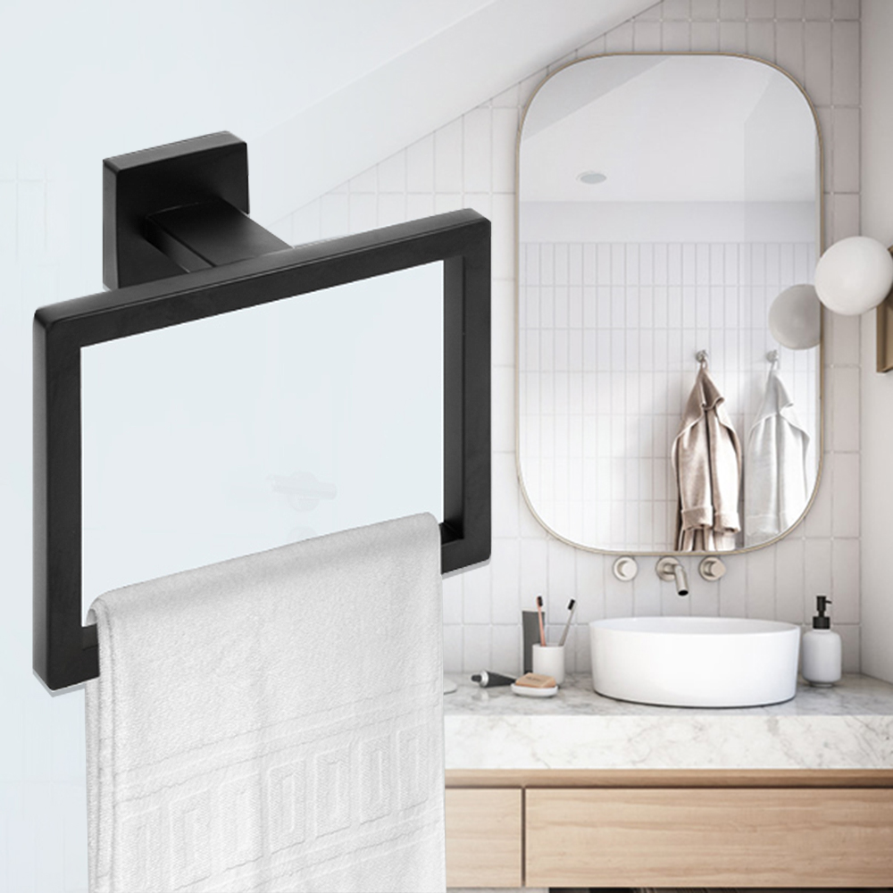 Modern Square Towel Hanger, Stainless Steel Towel Ring, Hand Towel Holder For Bathroom Storage black