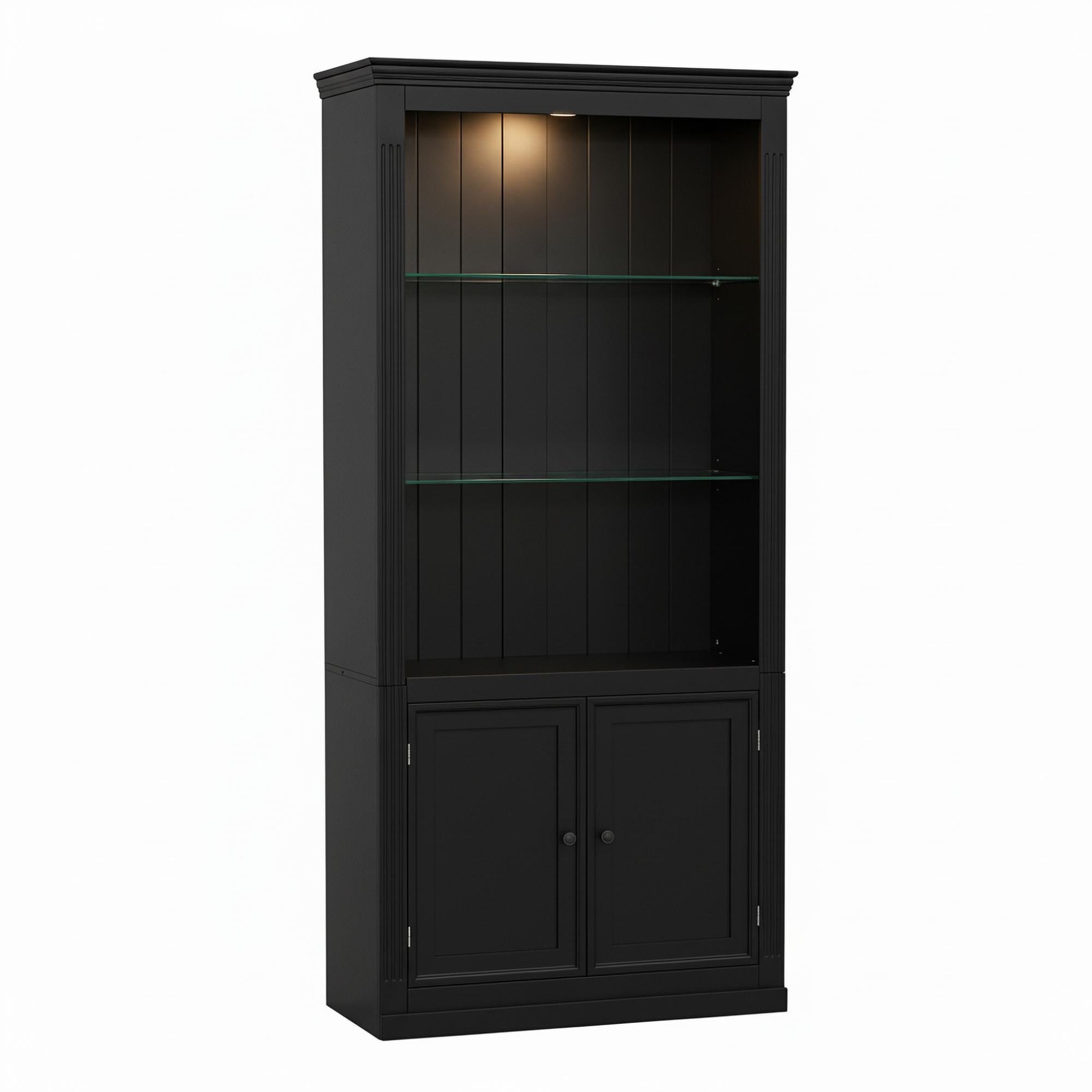 GDFStudio - 52" Tall Large Capacity Multi-Functional Bamboo Linen Tower Storage Cabinet with Open Shelves & Door Cabinet