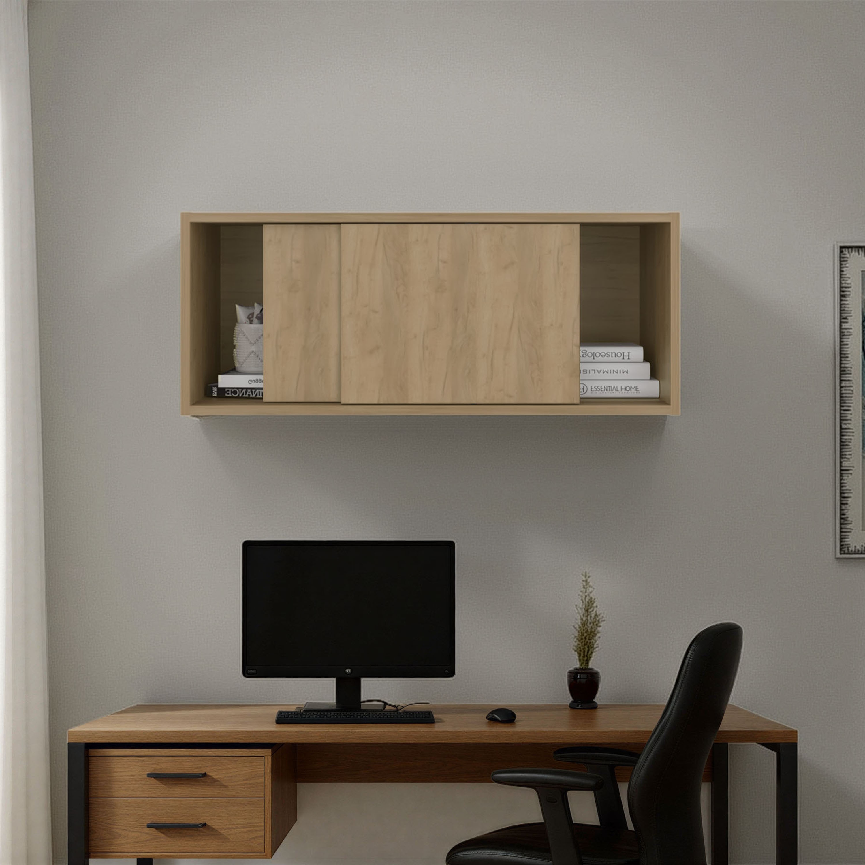 Note 32-Inch Wide Wall Storage Cabinet with Sliding Doors