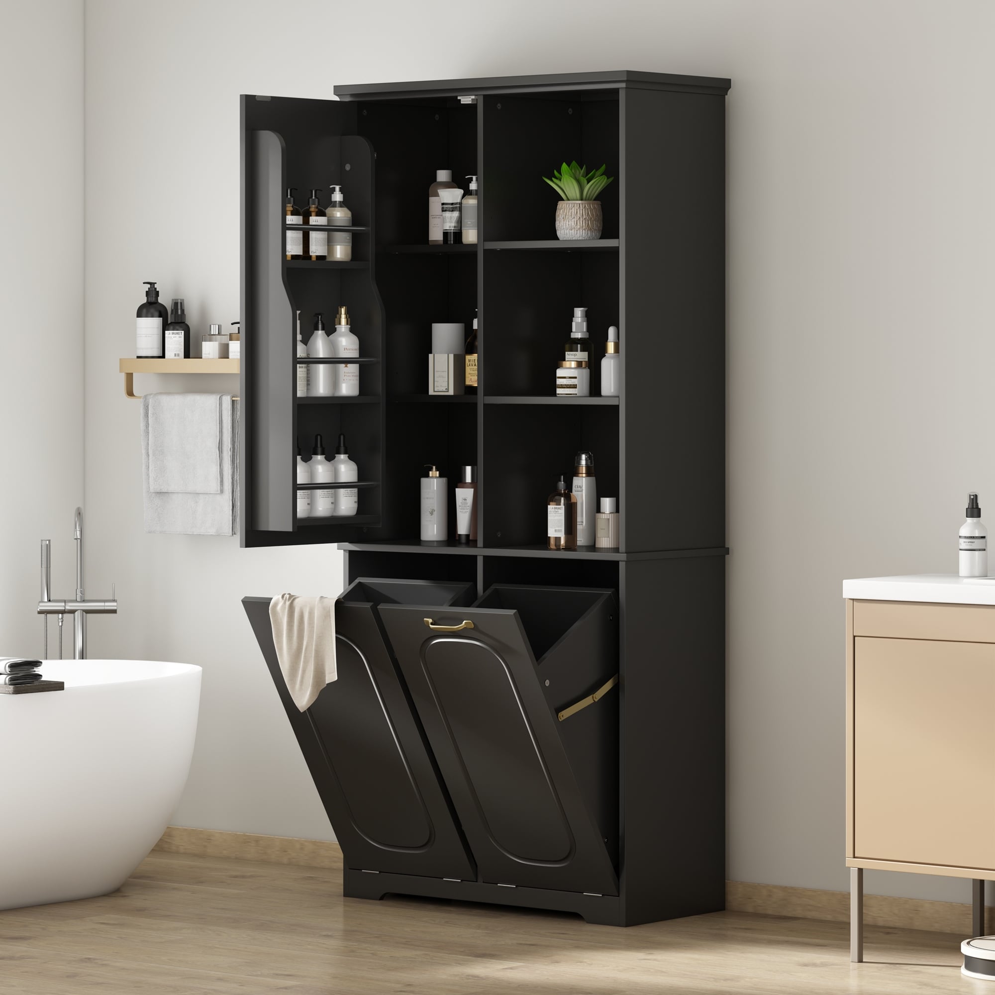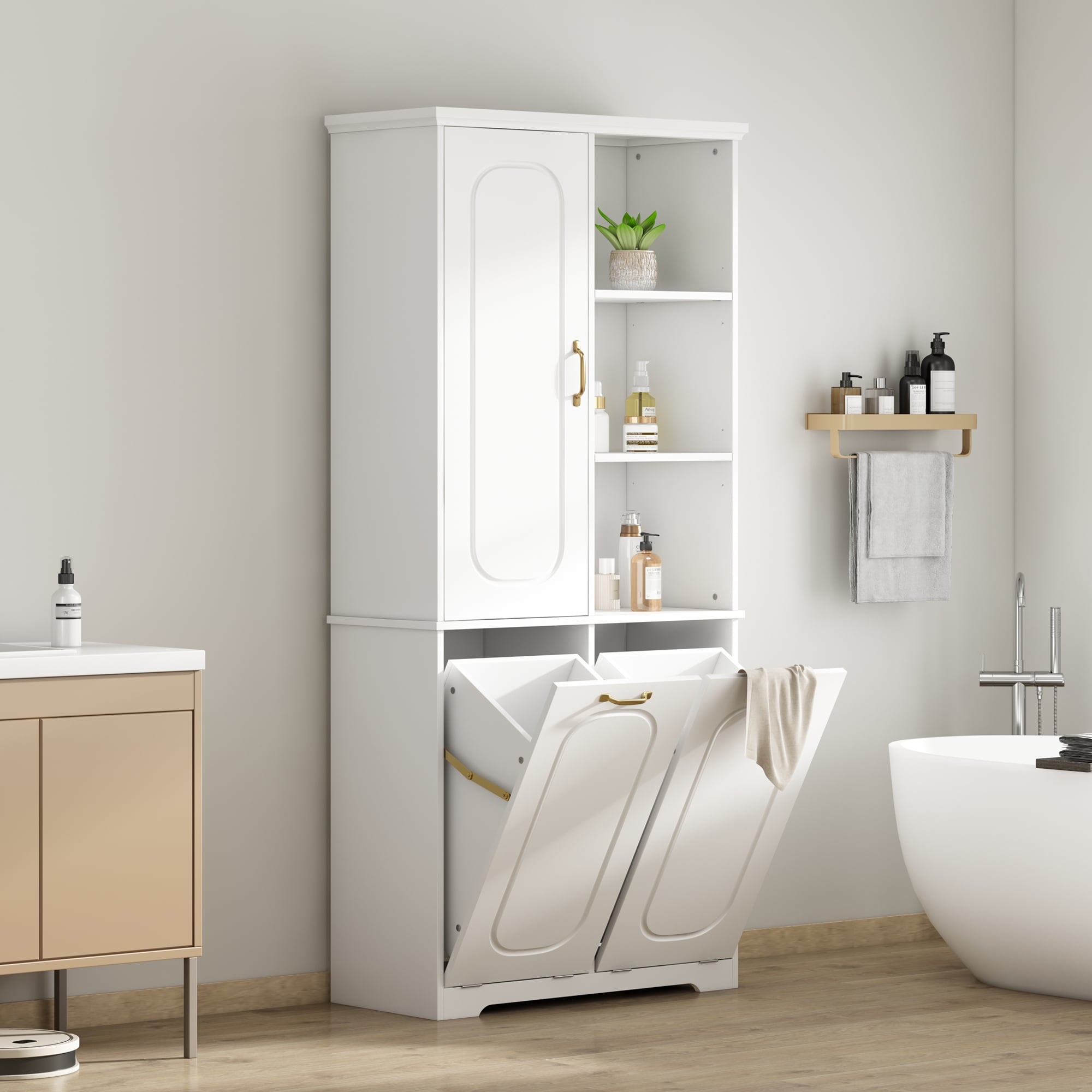 68"Inch Tall Storage Cabinet with 2 Tilt-Out Laundry Hampers,Adjustable Shelves,Soft-Close Door,Door-Mounted Organizer