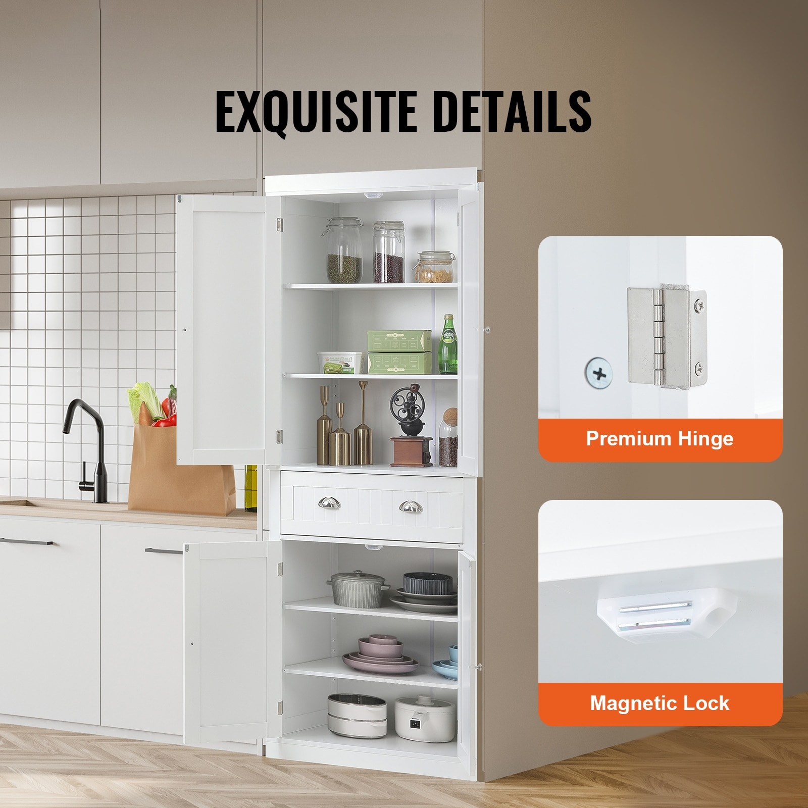 Modern Tall Bathroom Storage Cabinet, Freestanding Storage Cabinet with 2 Drawers and Adjustable Shelves, for Bathroom, White