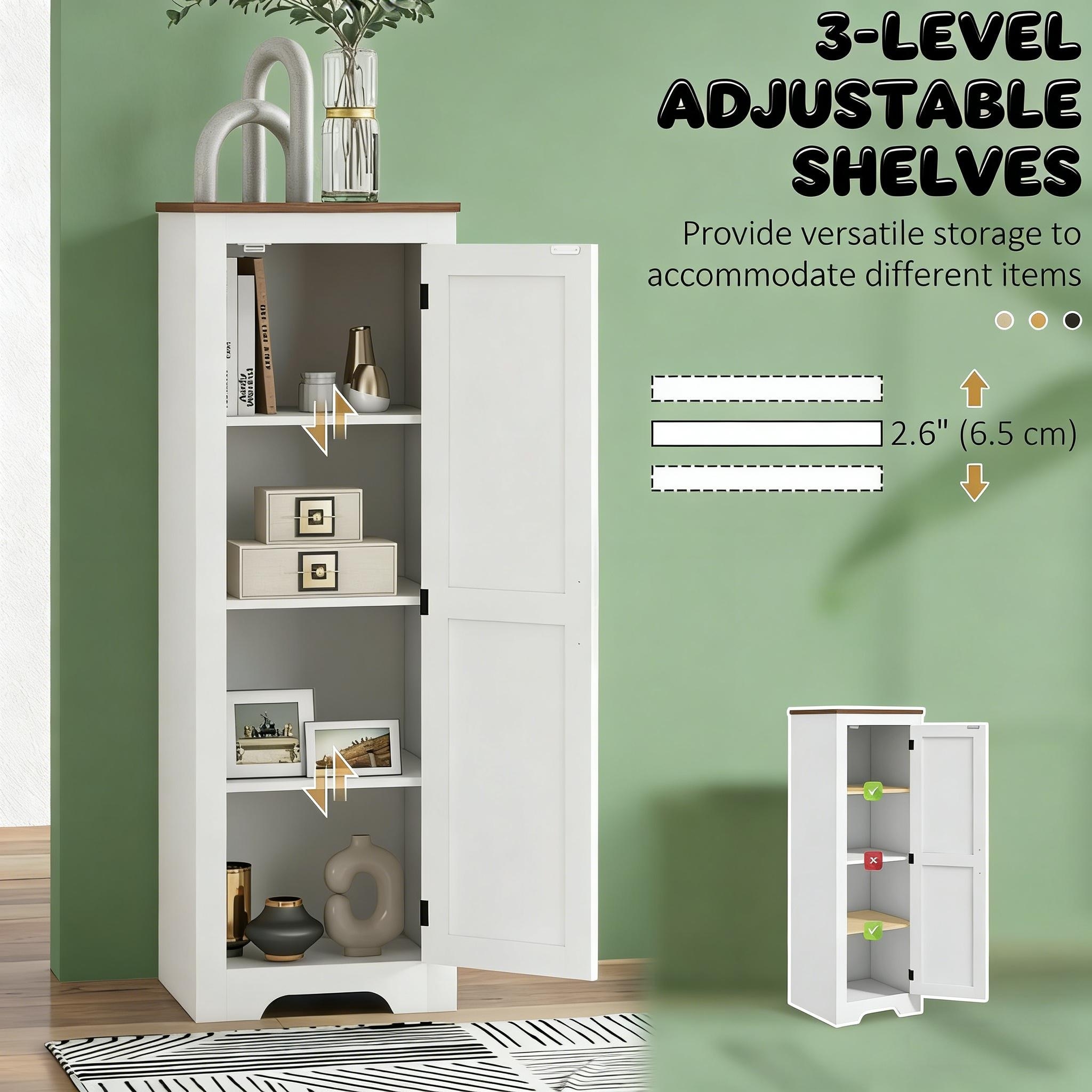 American Light Retro Bathroom Cabinet, Storage Cabinet with 2 Doors and 5 Storage Compartments, for Bathroom, White