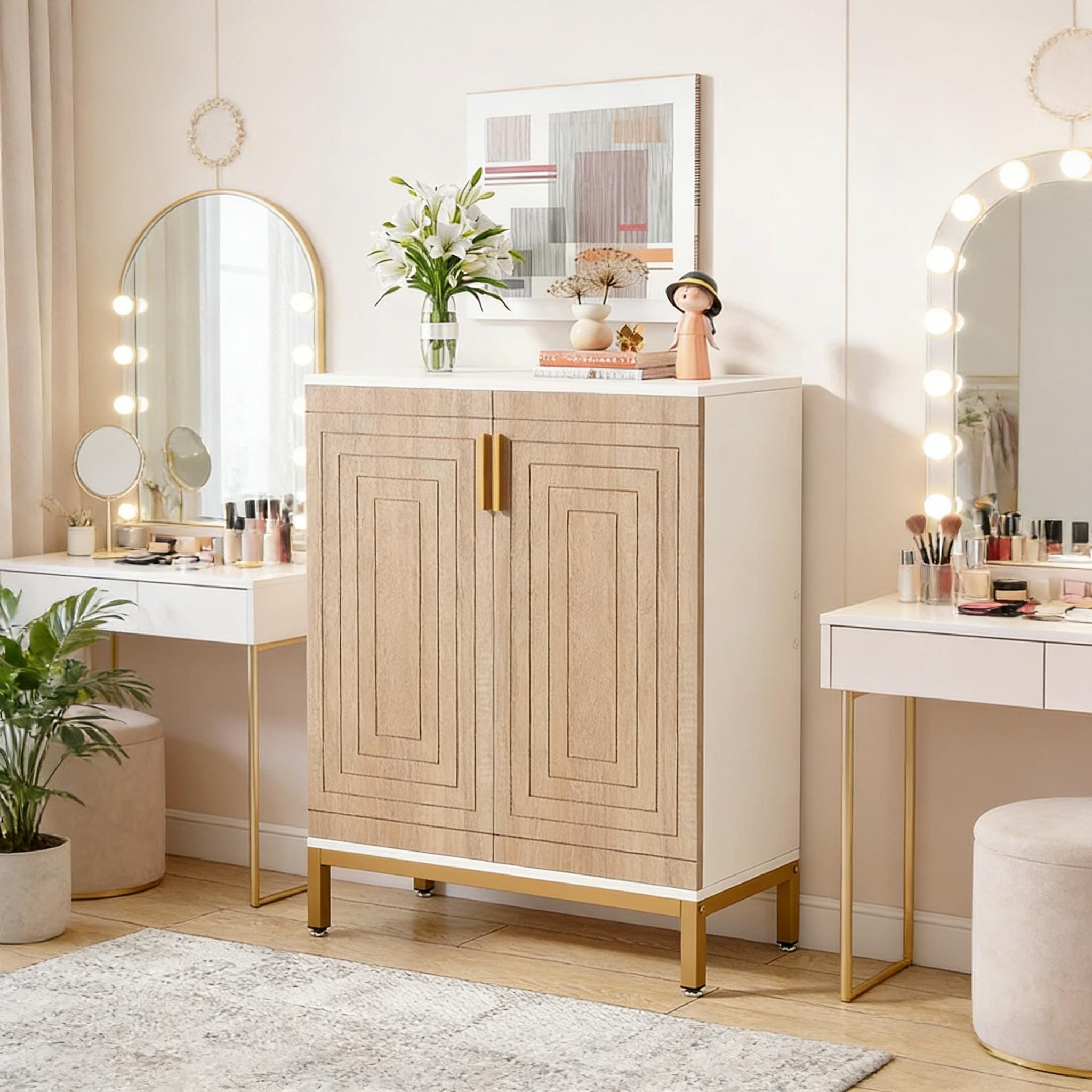 Durable Shoe Racks Organizer - Gold+White,Natural