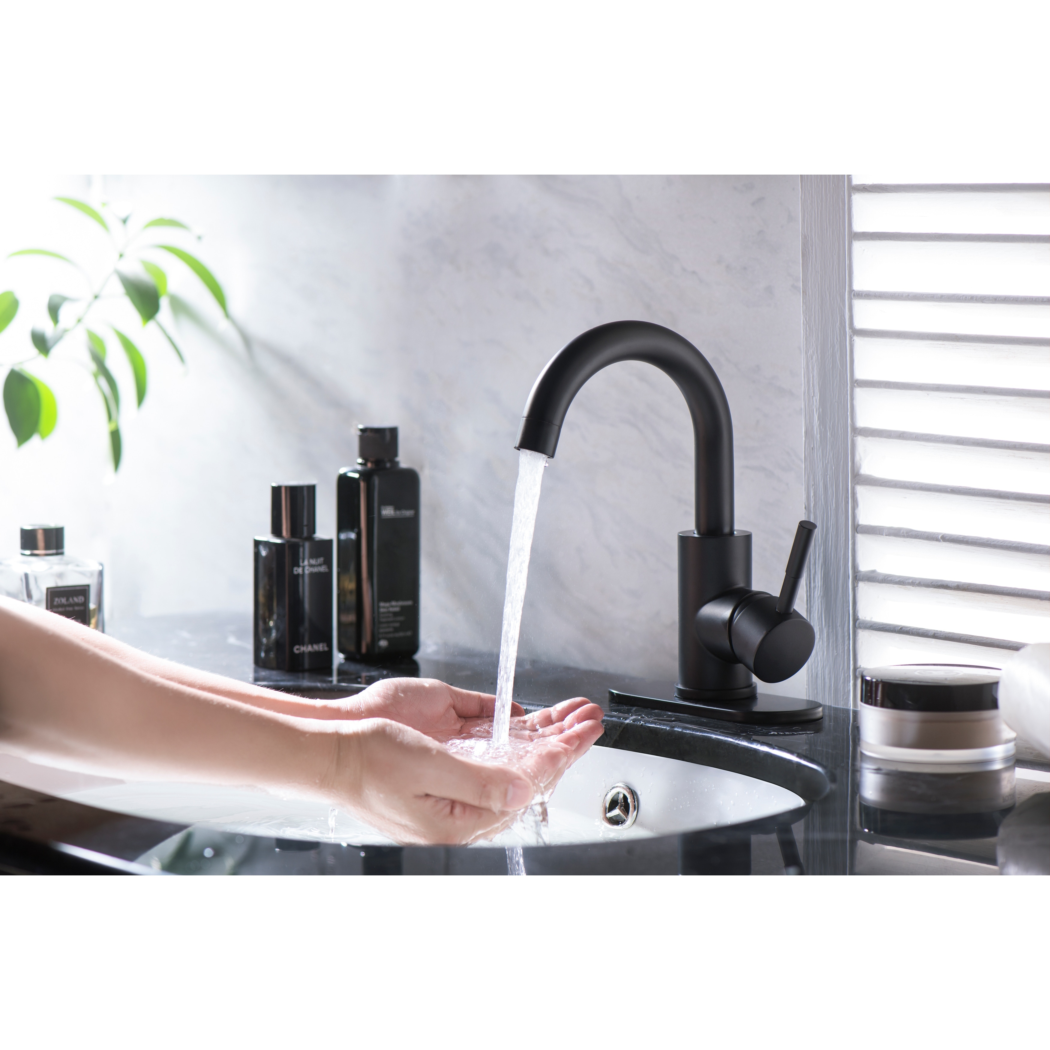 Modern Single Hole Bathroom Faucet, Solid Brass Square Sink Faucet with Pop-Up Drain and Water Supply Hoses