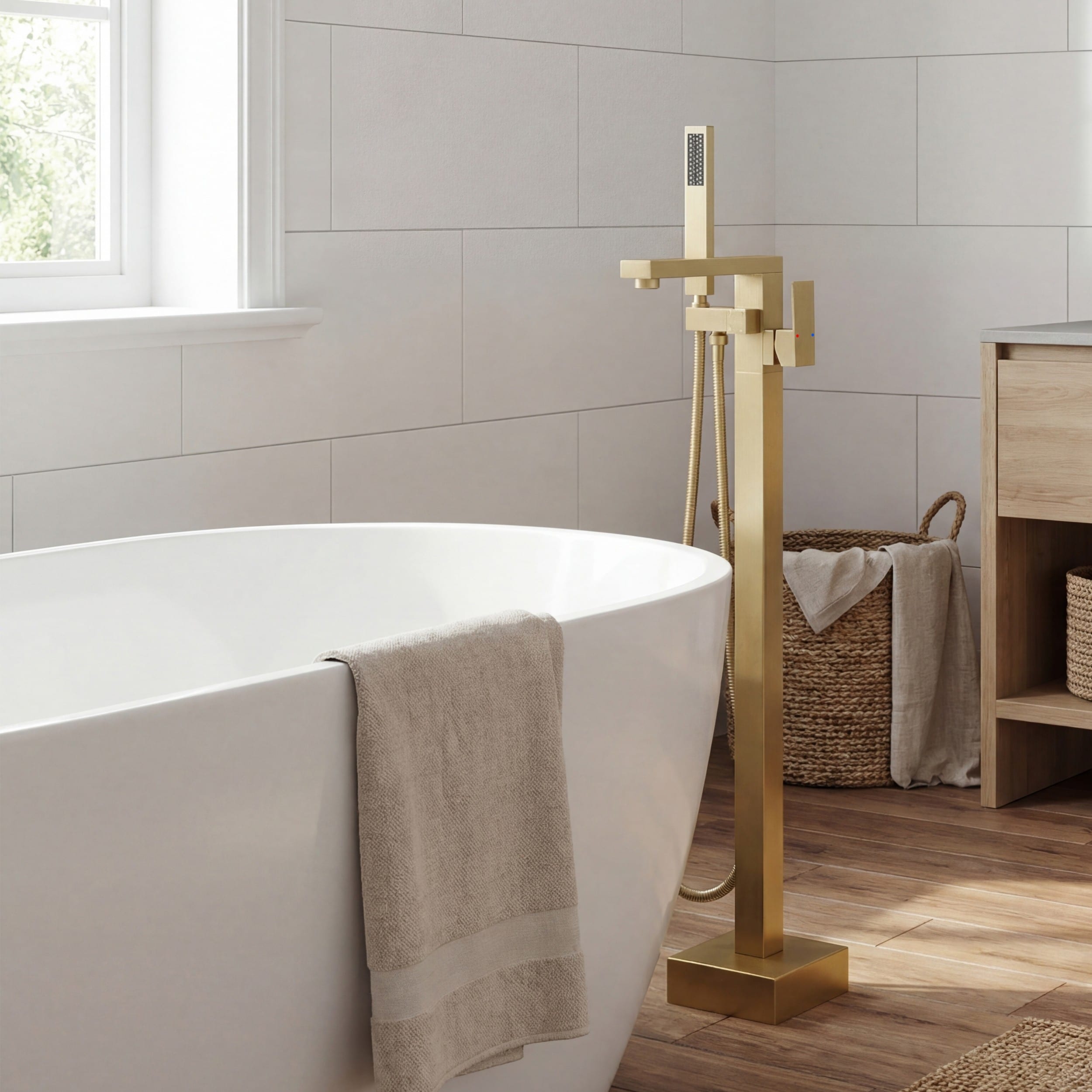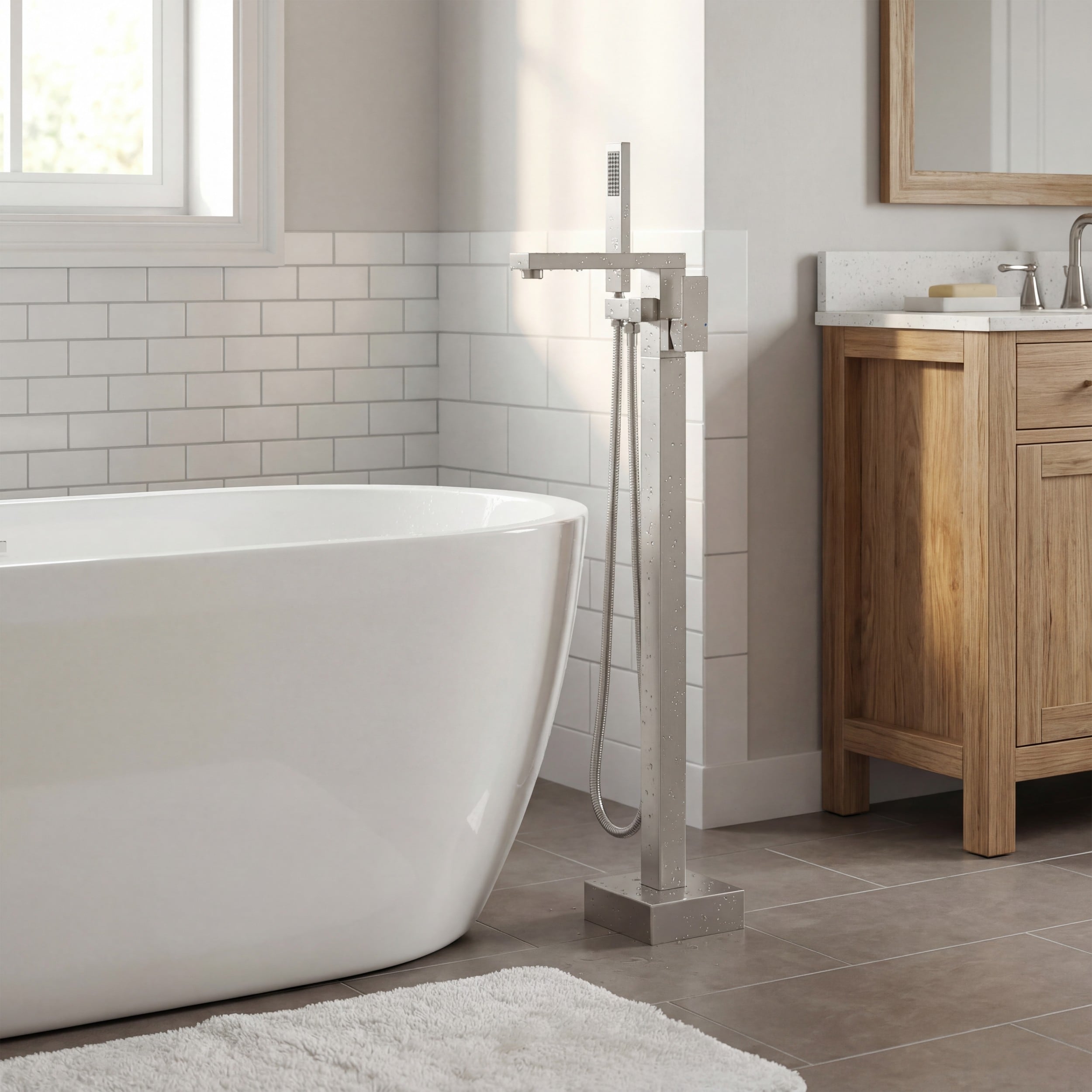 Modland 304 SS Freestanding Bathtub Faucet with Handheld Shower, High Flow Floor Mount Tub Filler, cUPC Leak-Proof Valve
