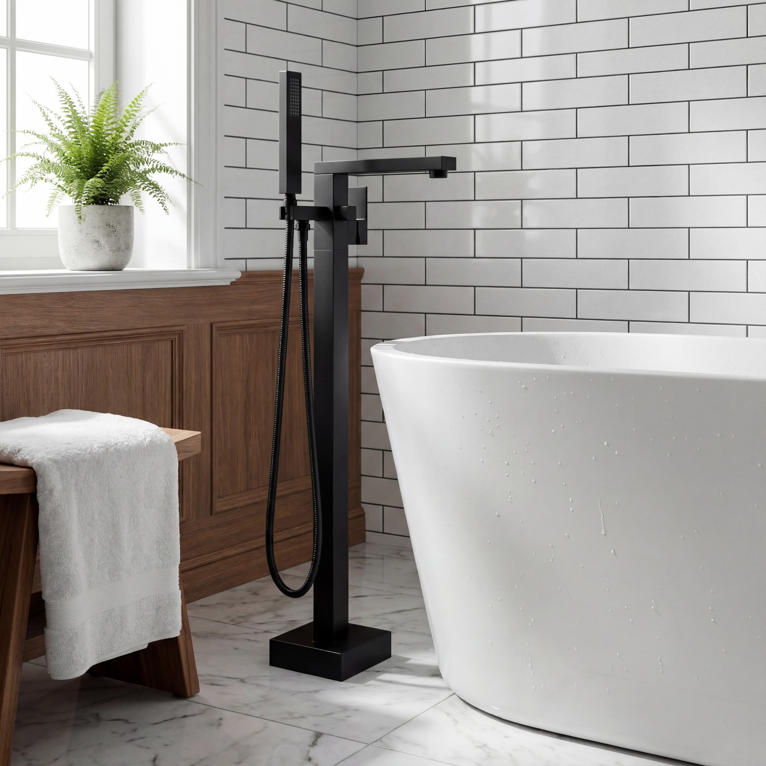 Freestanding Tub Faucets, Shower Mixer Taps, Floor Mounted Tub Filler With Handheld Shower