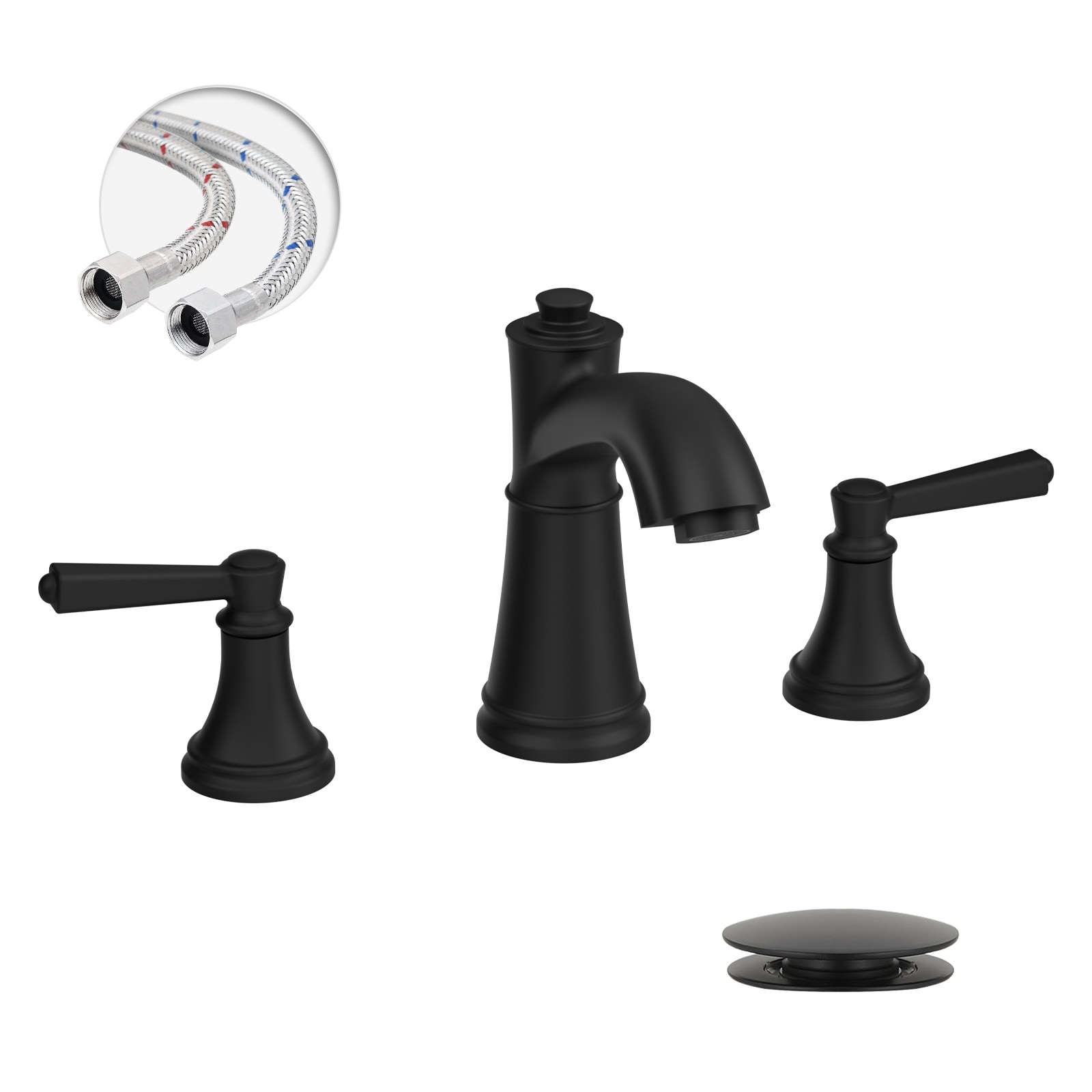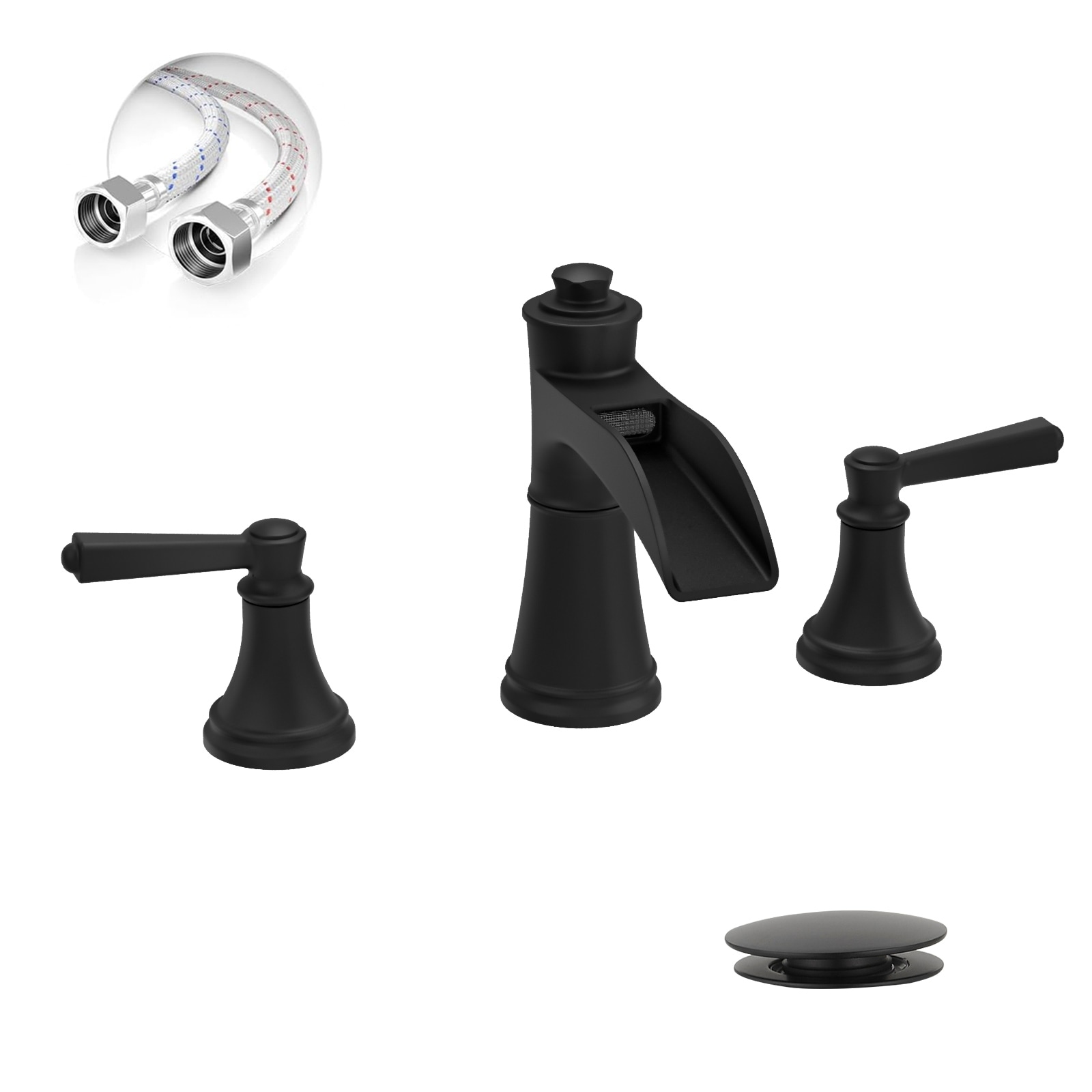 WIZ Waterfall 8 in. Widespread Black Bathroom Faucet with Metal Drain