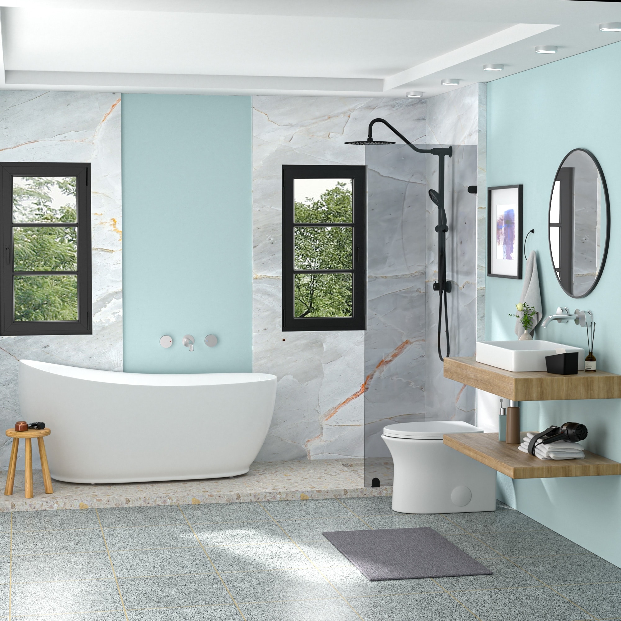 Nameeks CeraStyle 042300-U-One Hole Blue 31-1/2" Rectangular Ceramic