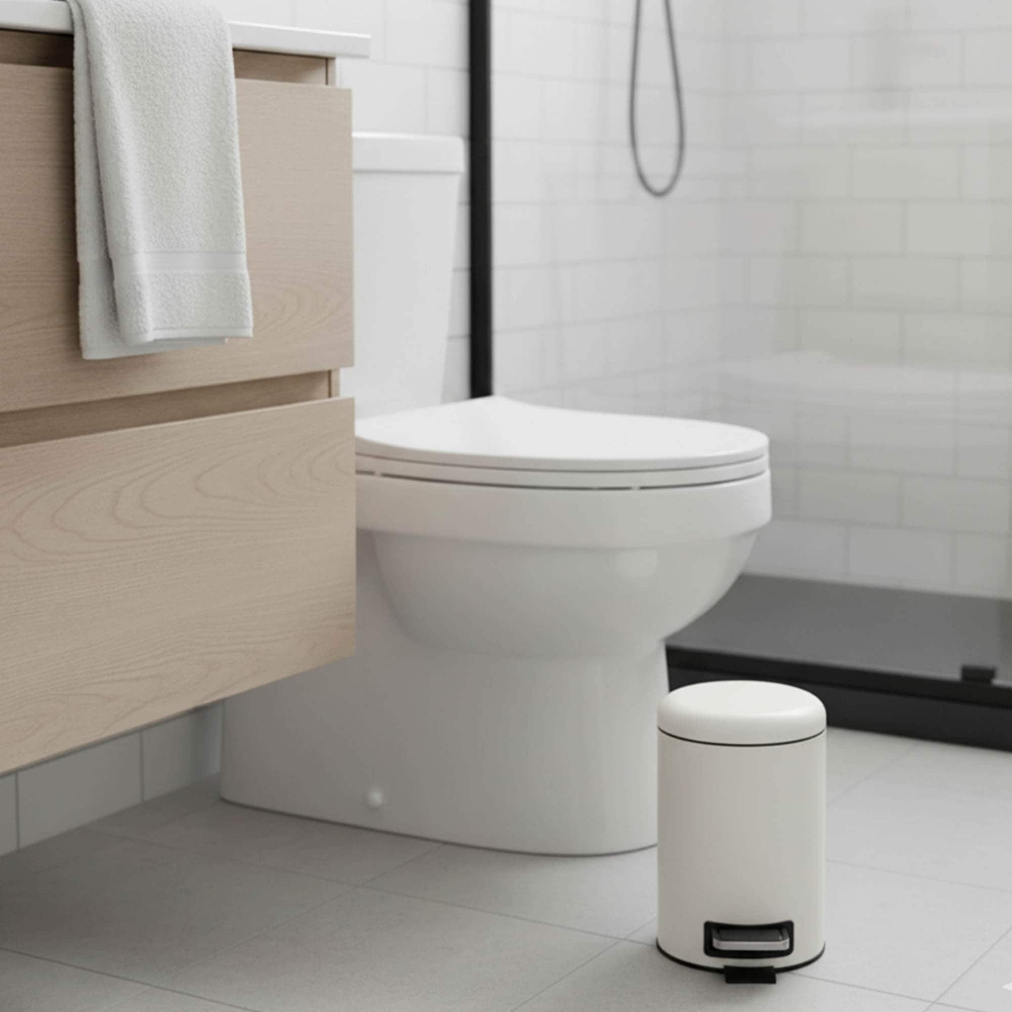 Evideco Soft Close Small Round Metal Bathroom Floor Step Trash Can White - 3 liters - 0.8 gal.