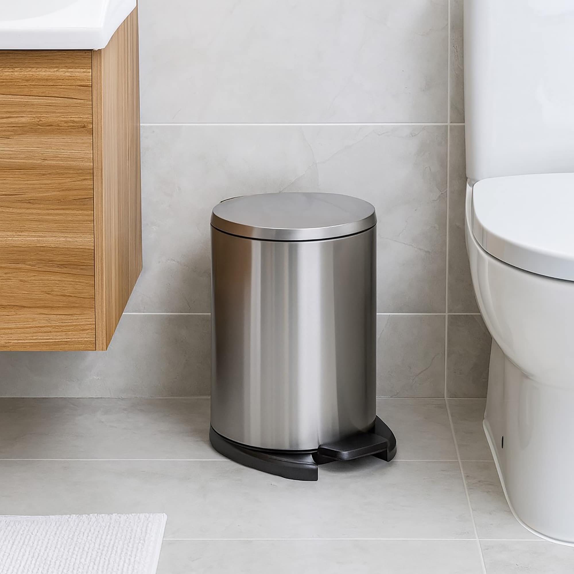 Soft Close Lid Stainless Steel Round Step Trash Can Waste Bin 6-liters -1.6-gal. - 1.6