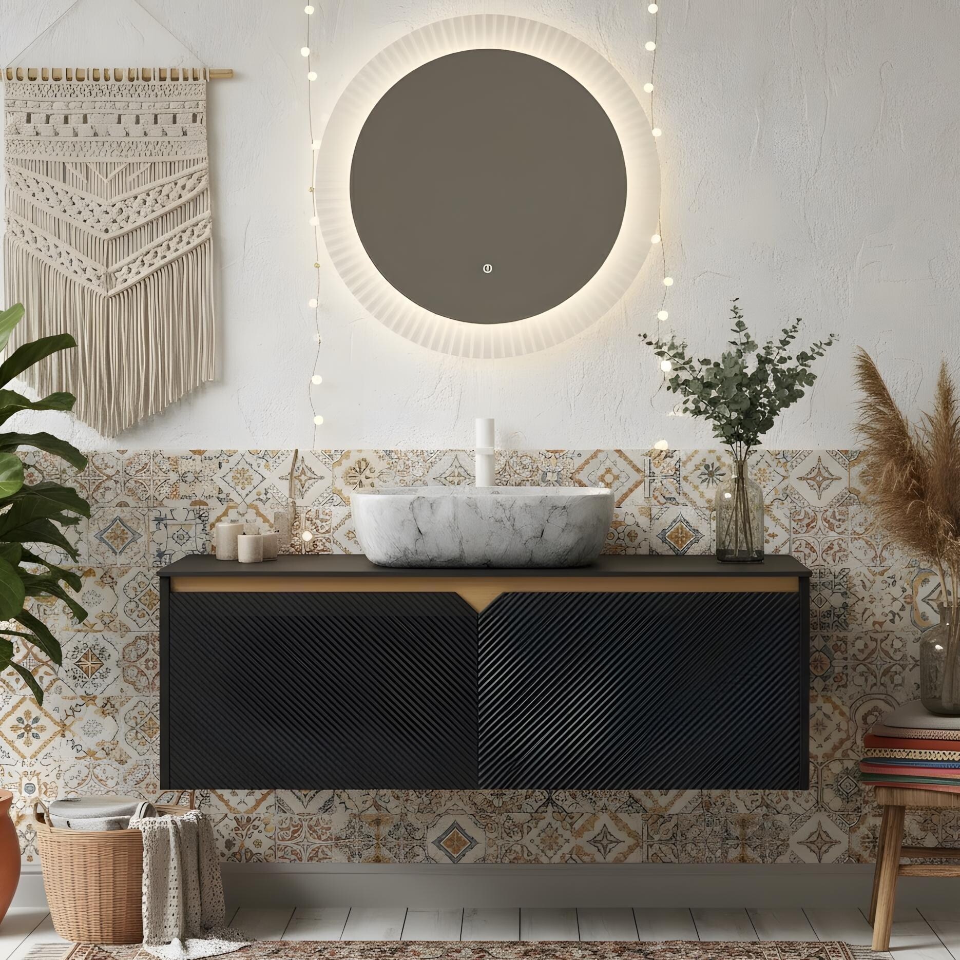 Modland 60" Wall-Mount Double Vanity with 6 Soft-Close Drawers & LED Lights - Maple Wood - 60 inch