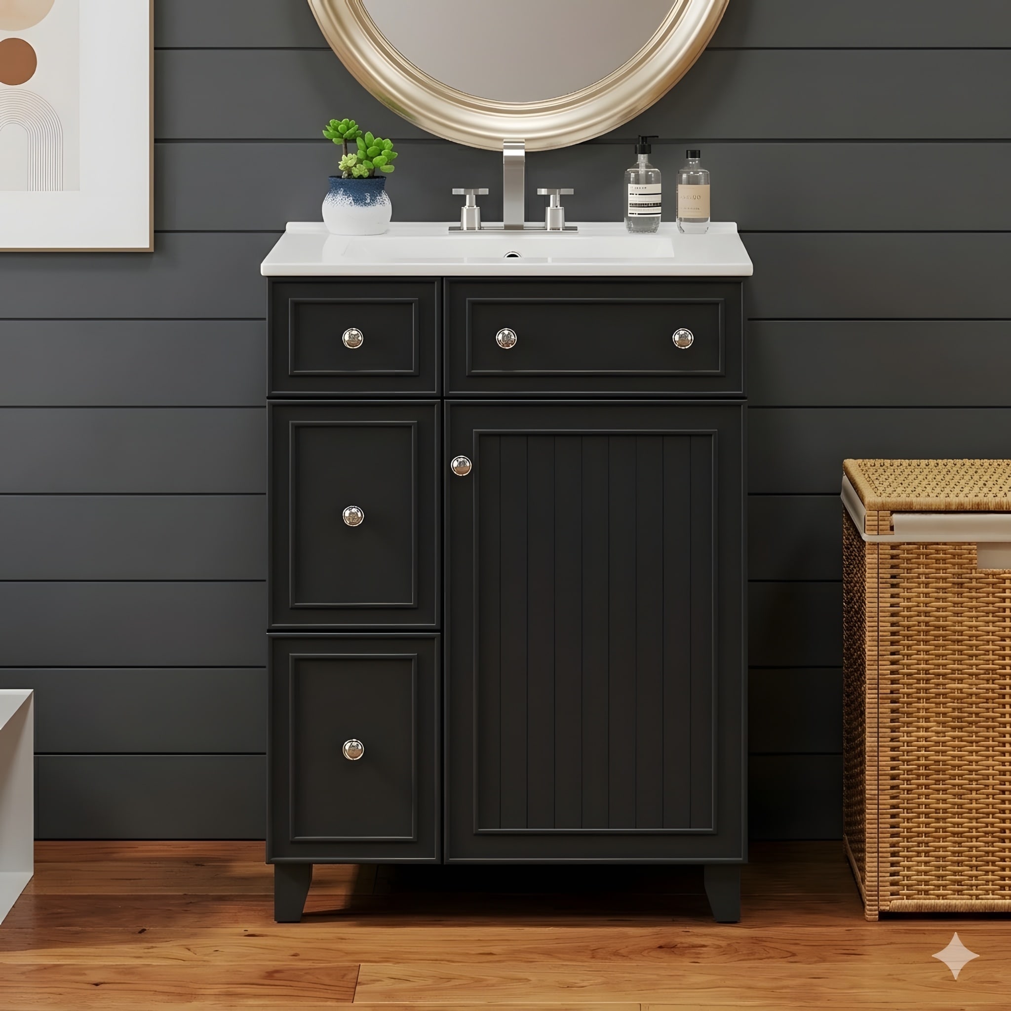 24-inch bathroom vanity with a ceramic sink, 2 drawers, and 1 door