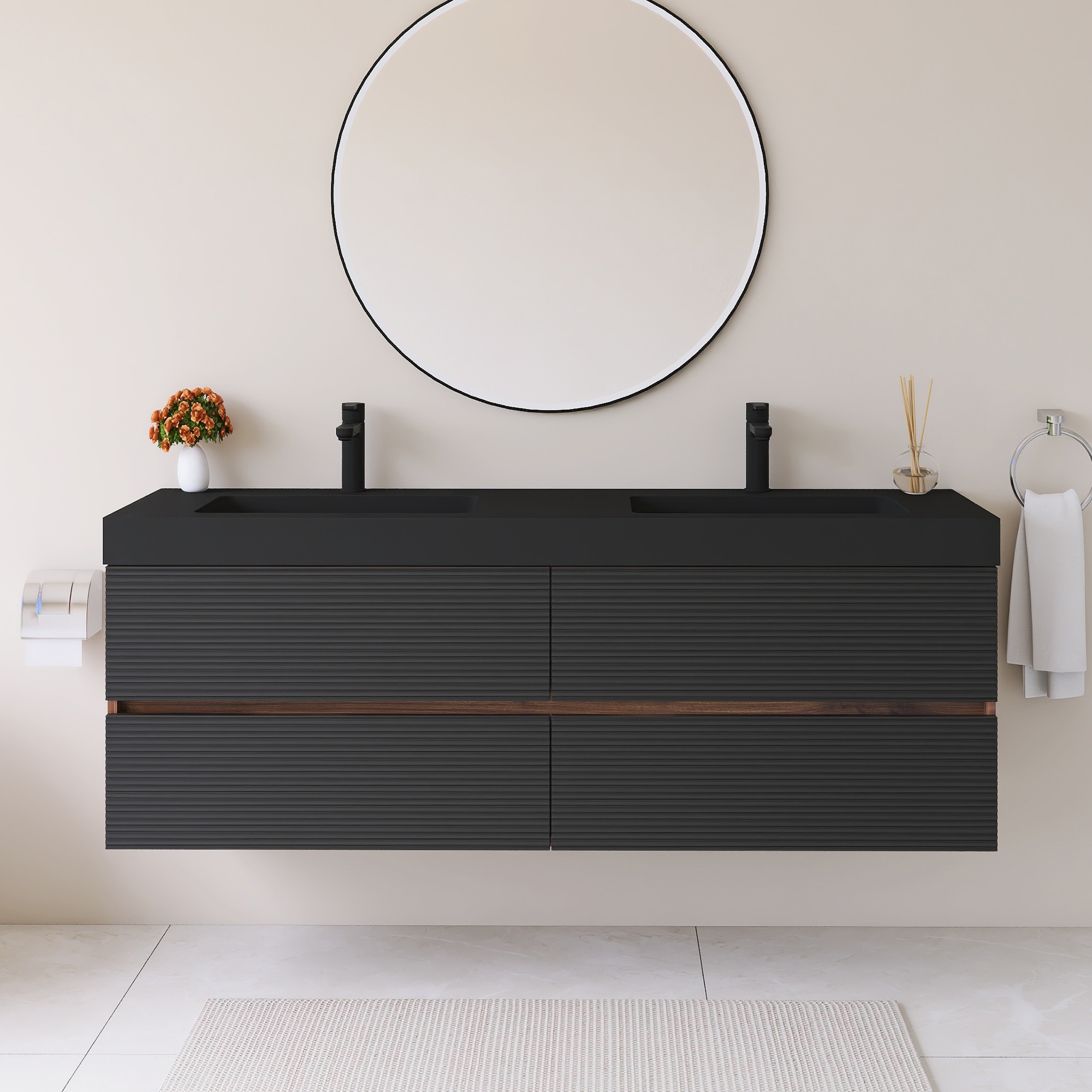 Wall Mounted Bathroom Vanity with Glossy White Solid Surface Sink