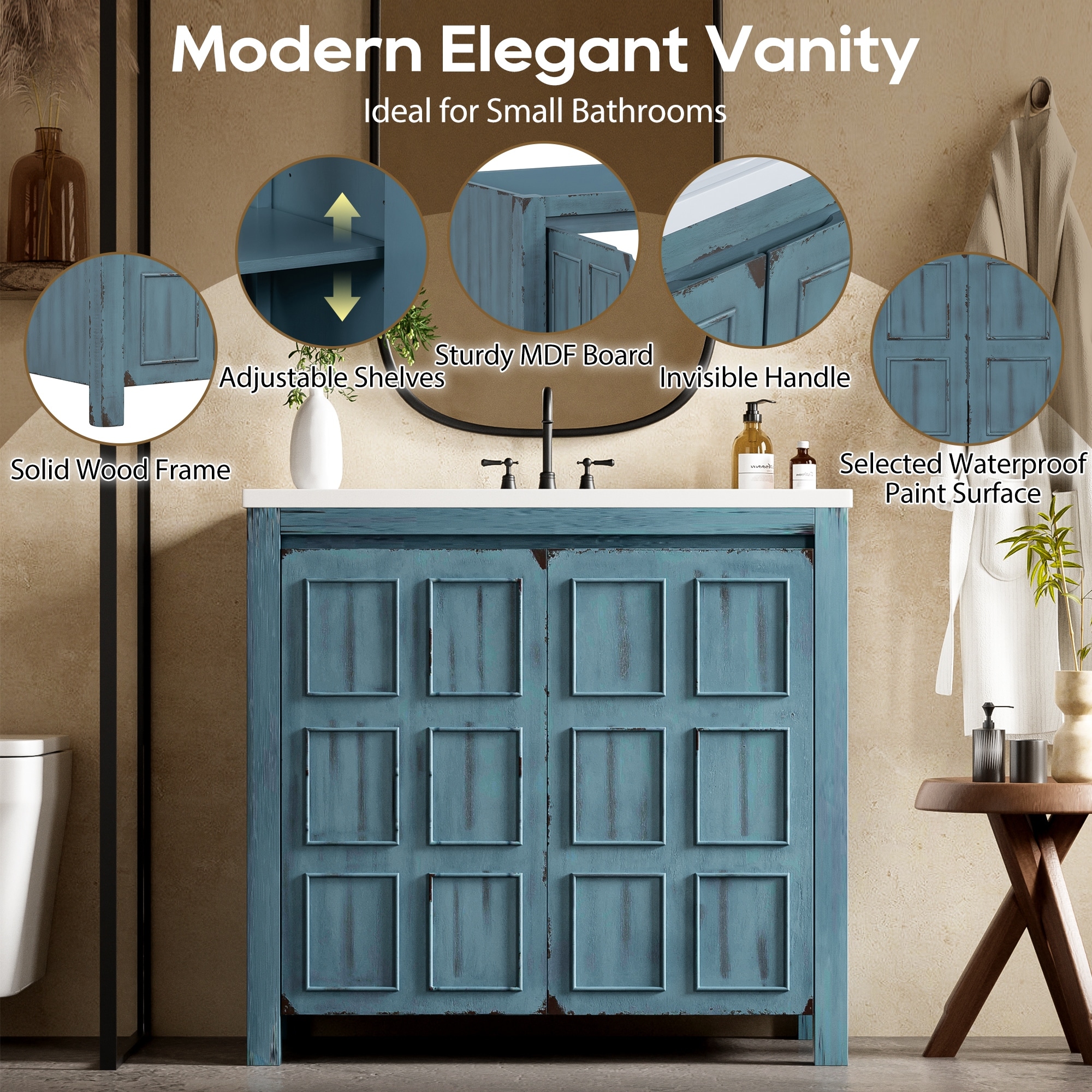 36" Bathroom Vanity with Undermount Resin Sink Combo Set, Solid Wood Frame Bathroom Storage Cabinet with Adjustable Shelves