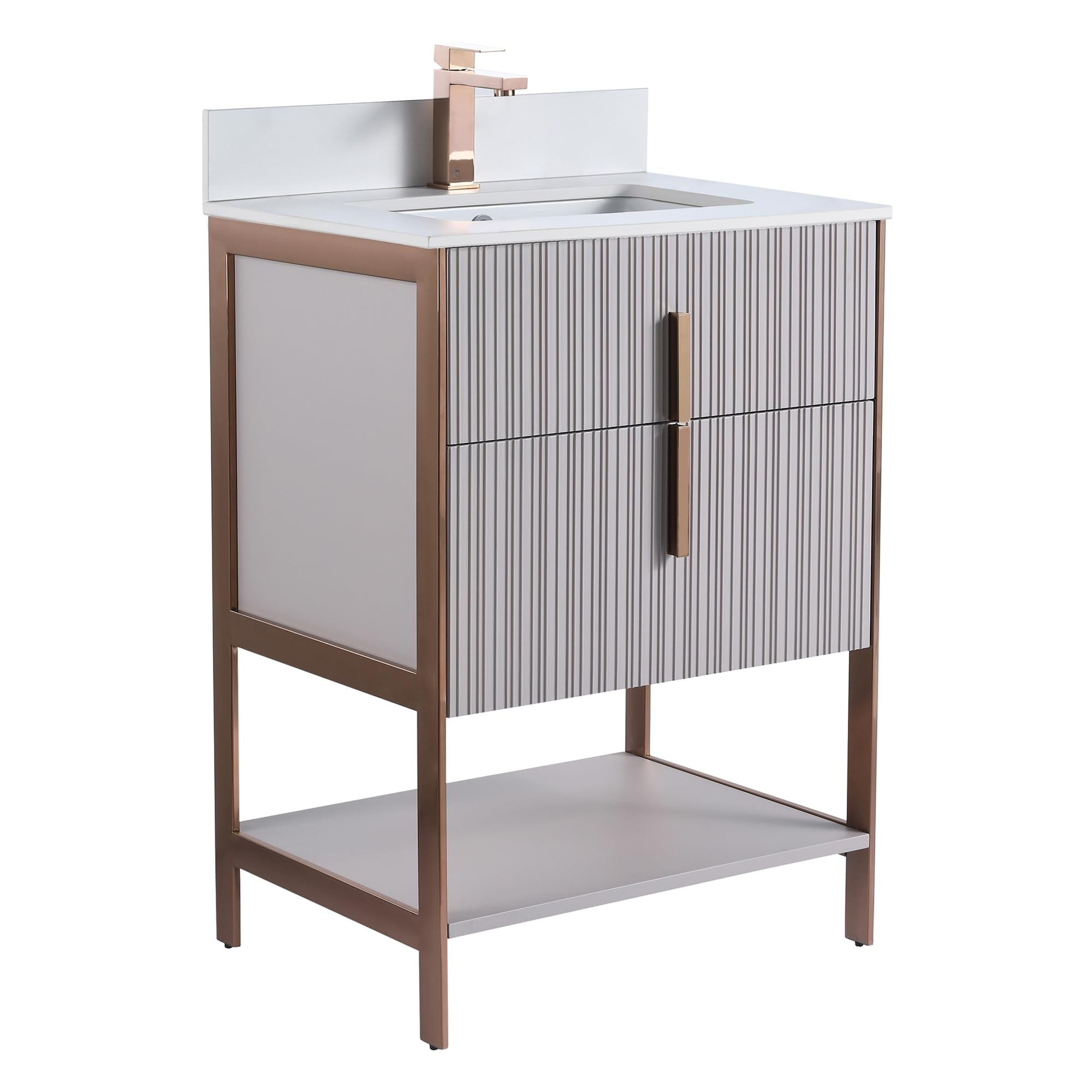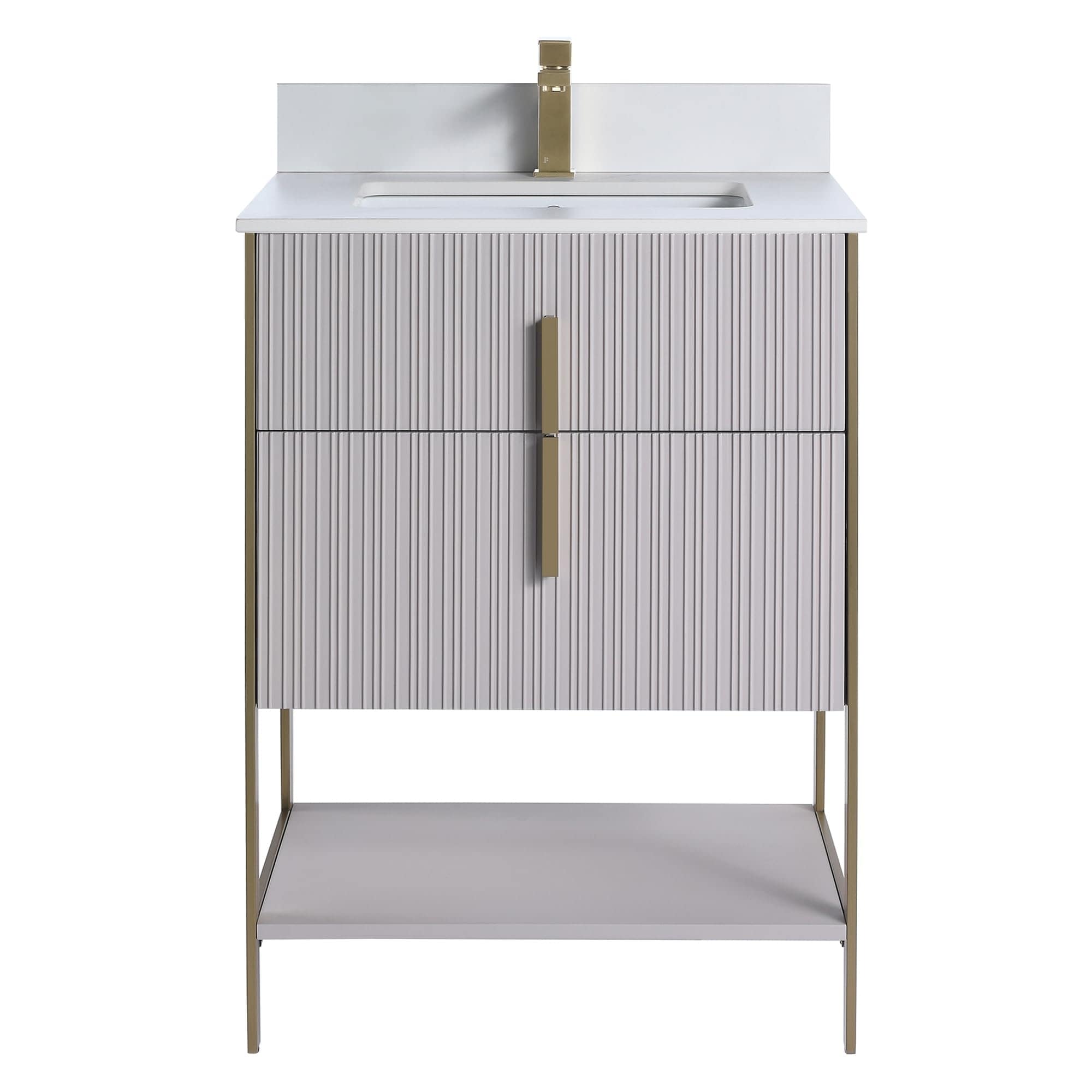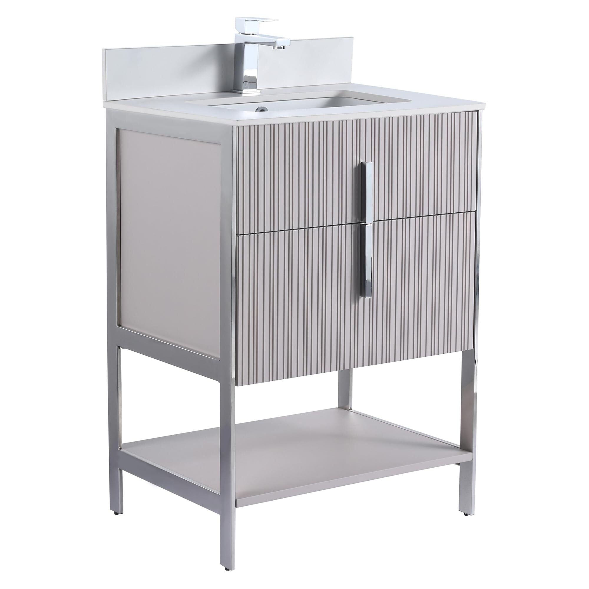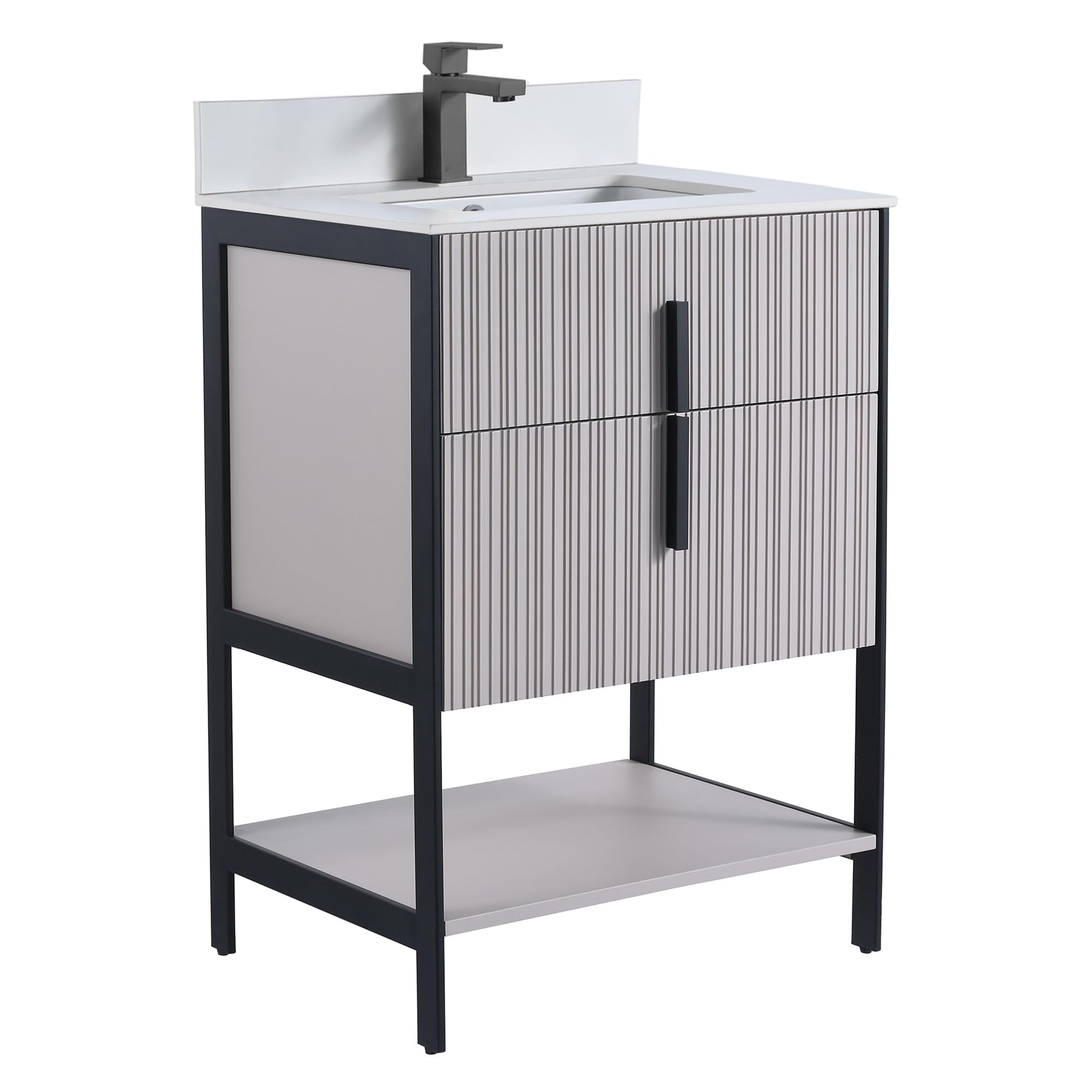 GDFStudio - Monteria Modern Wood Bathroom Vanity with Ceramic Sink, 2 Drawers and Adjustable Shelf - 24'W