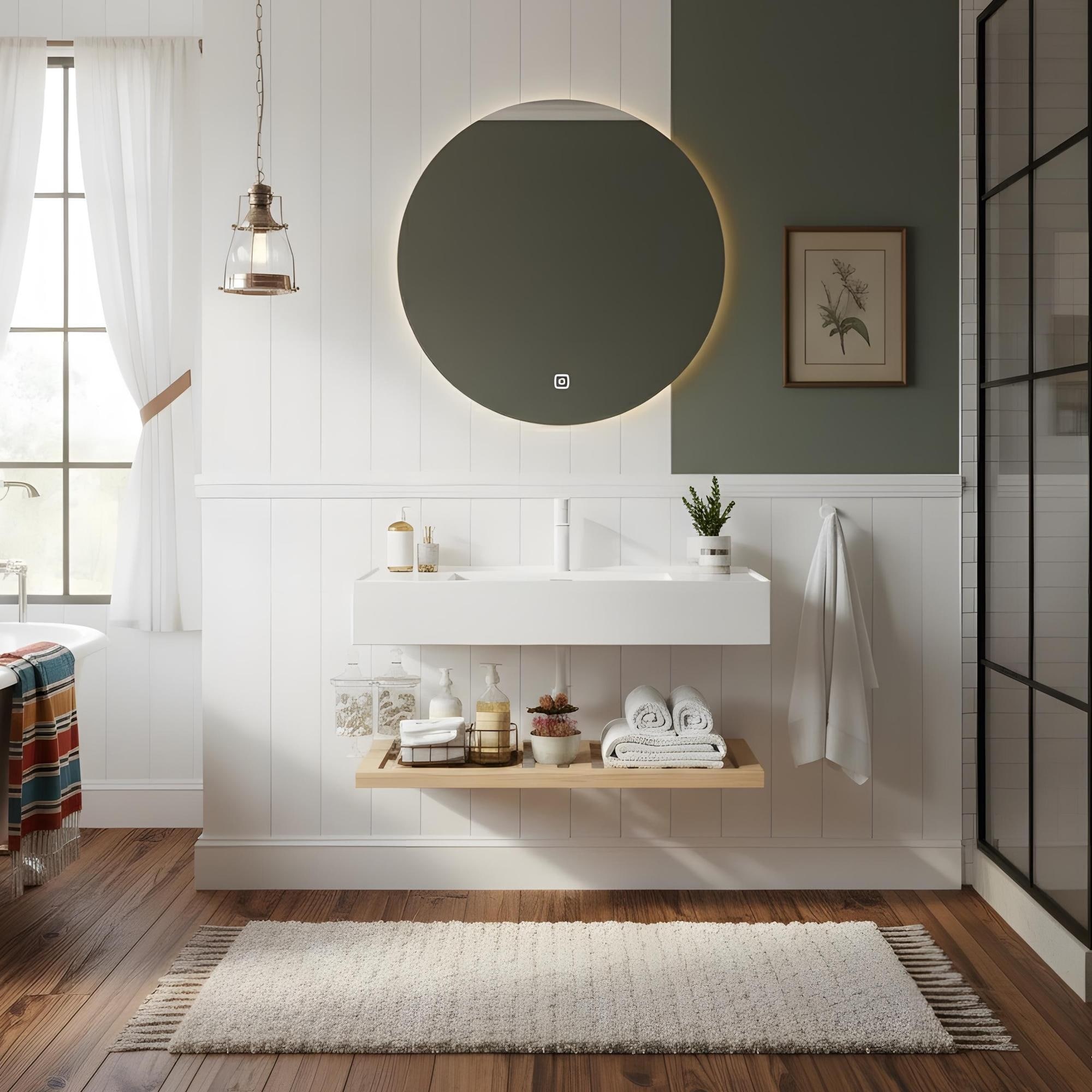 Bathroom Vanity with Vessel Sink and Striped Shelf Layer