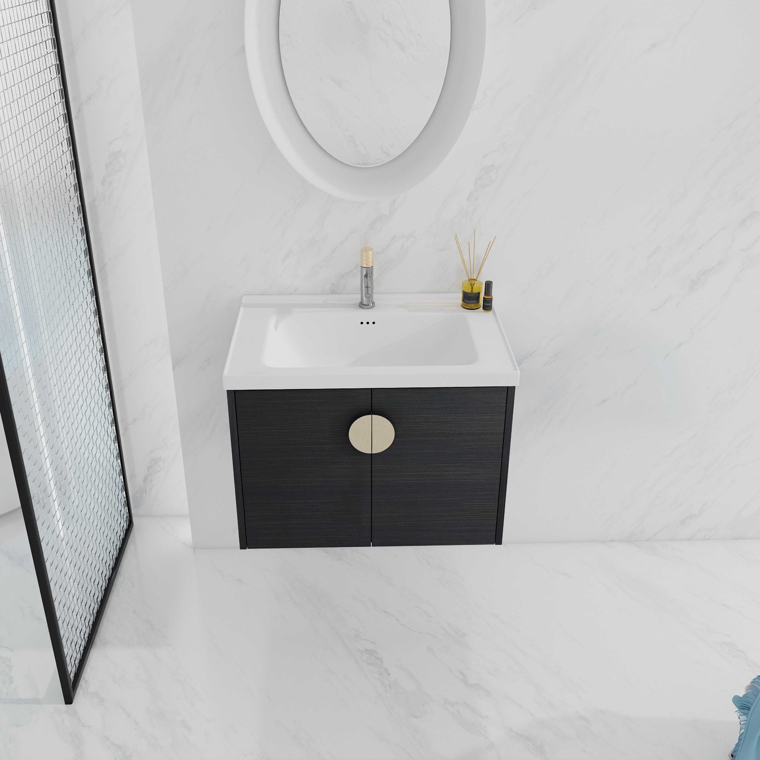28" Wall Mounted Bathroom Vanity with Ceramic Sink, Soft Close Doors, Storage Cabinet for Small Bathrooms