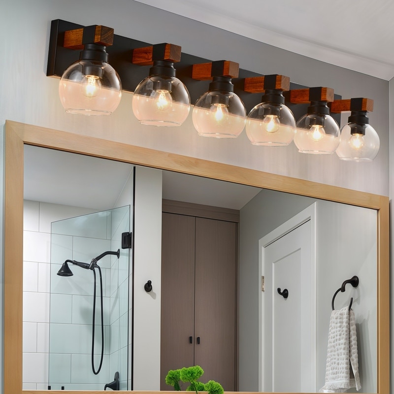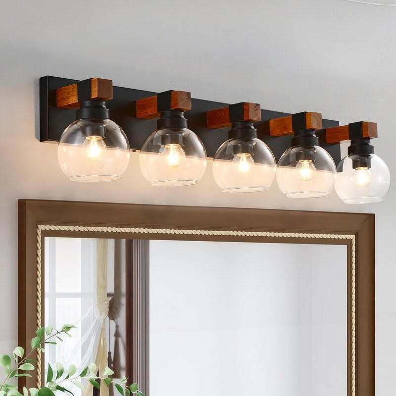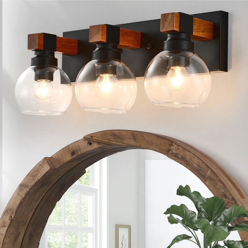 Farmhouse Bathroom Vanity Light Fixtures, Rustic Wood Bathroom Wall Lighting Light over Mirror