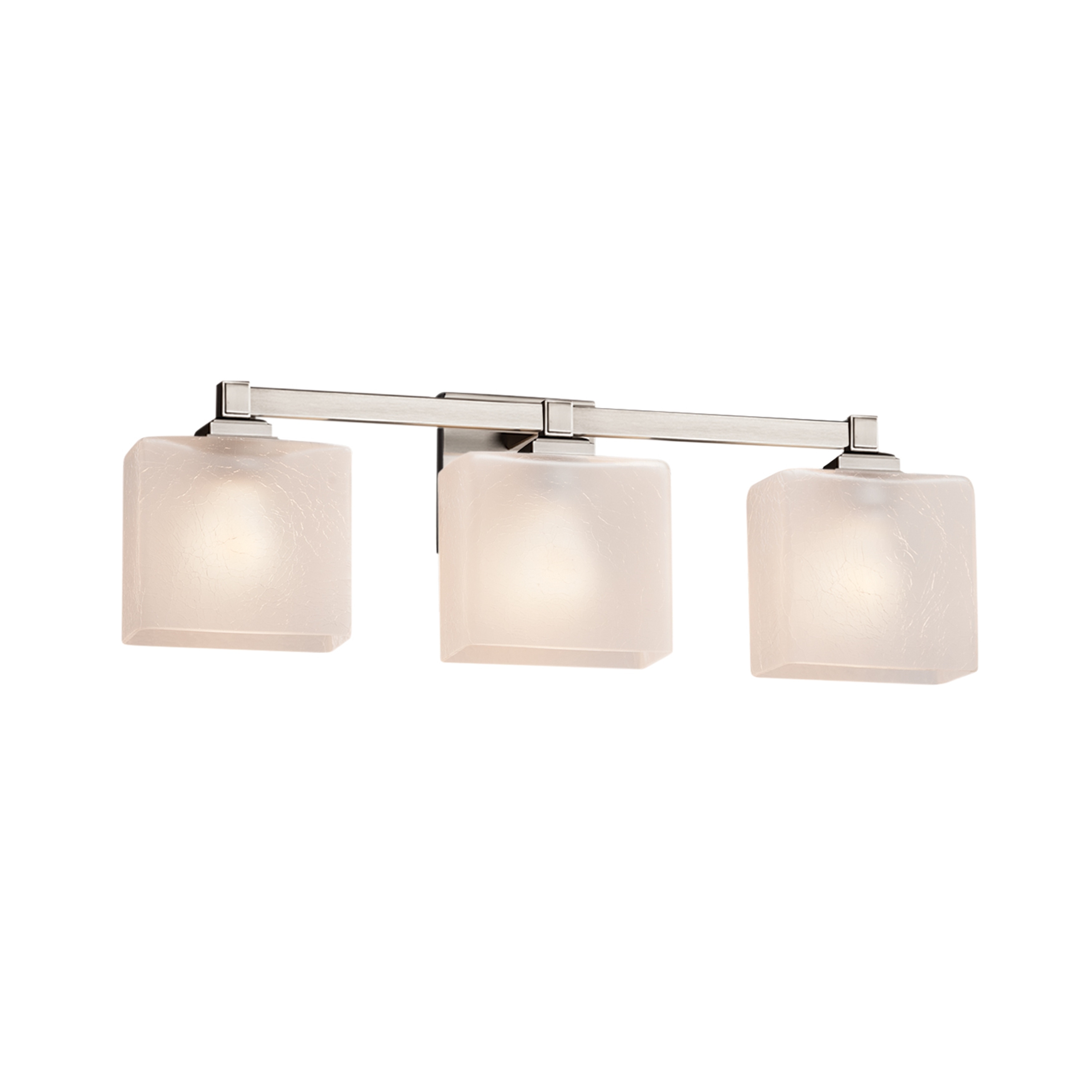 Justice Design Fusion Regency 3-light Brushed Nickel Bath Bar, Frosted Crackle Rectangle Shade