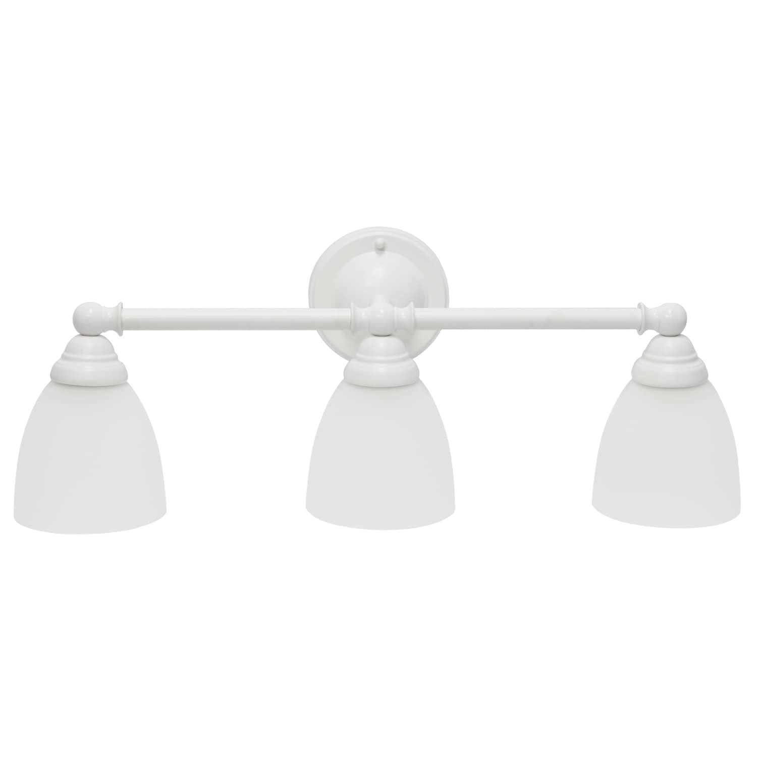 3 Light Vanity Fixture - Metal Bar & Frosted Glass Shades - Bathroom, Hallway, Entryway Lighting - White - 9.5