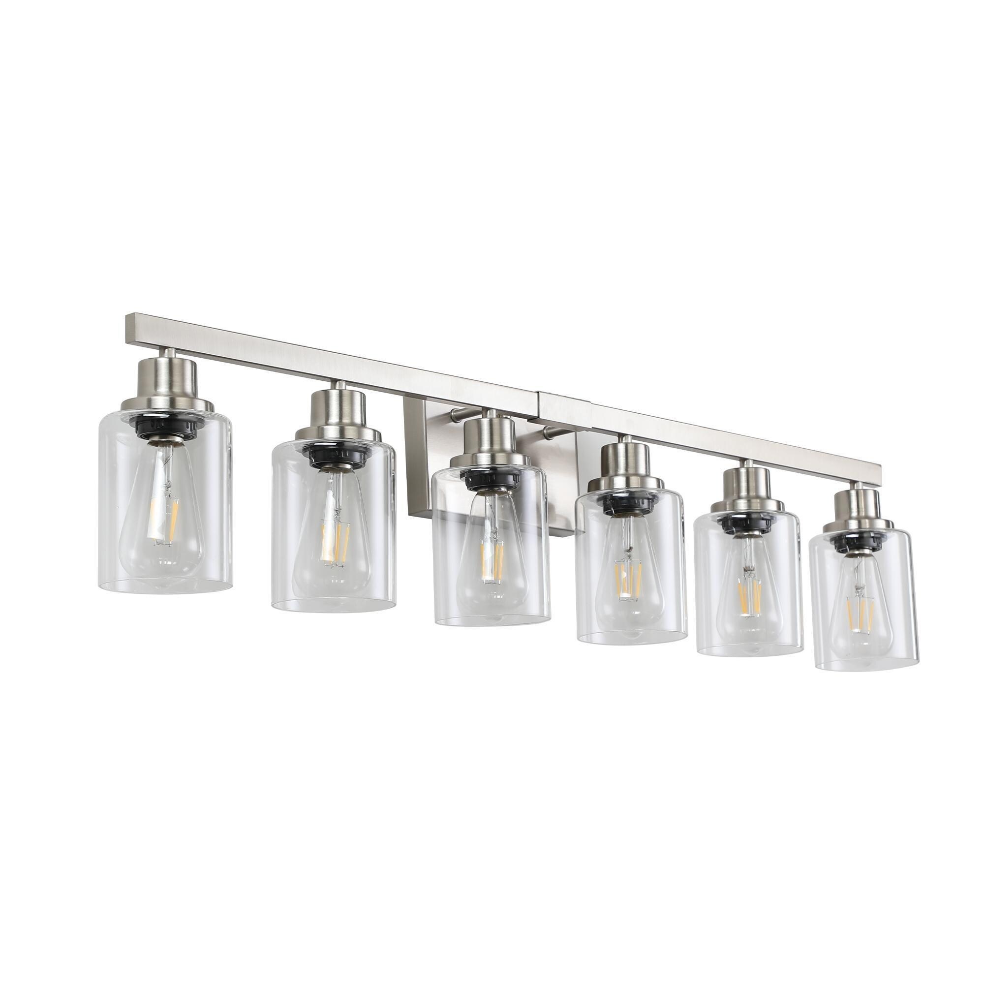 KAWOTI 6-Light Square Clear Glass Shade Vanity Light