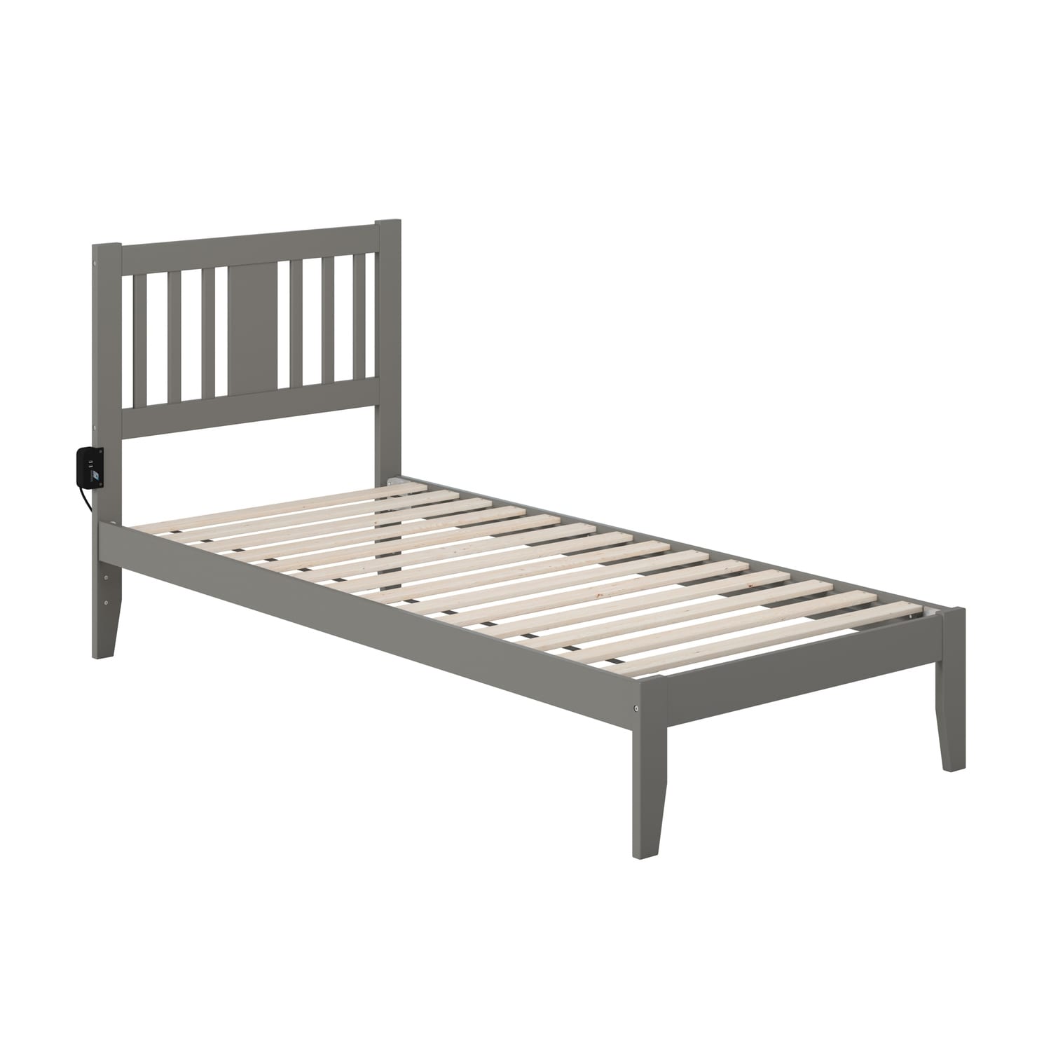 Twin XL Bed with USB Charger - Grey Mission Style Solid Wood Platform Bed Frame & Slat Kit
