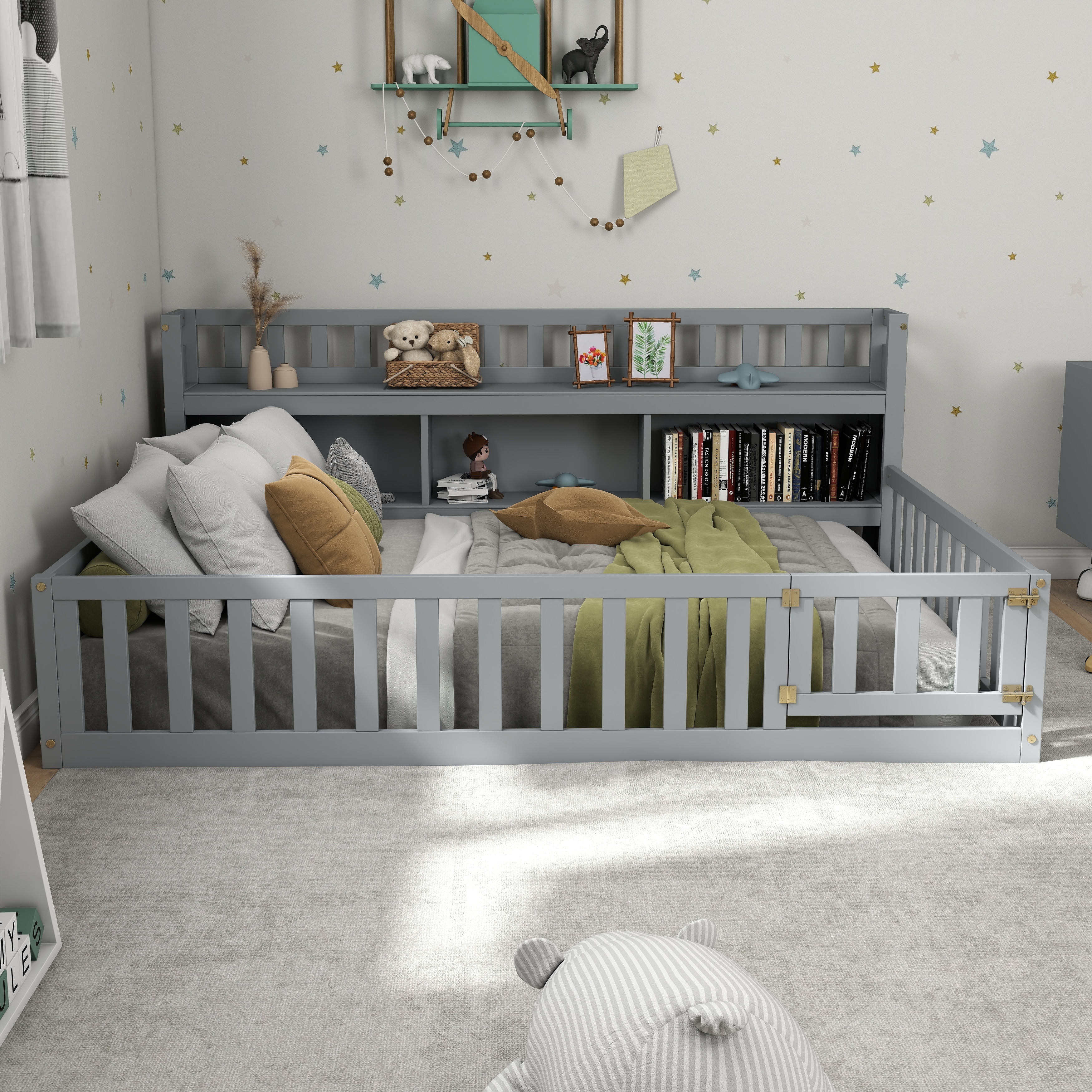 Full Size Wood Daybed Frame with Fence